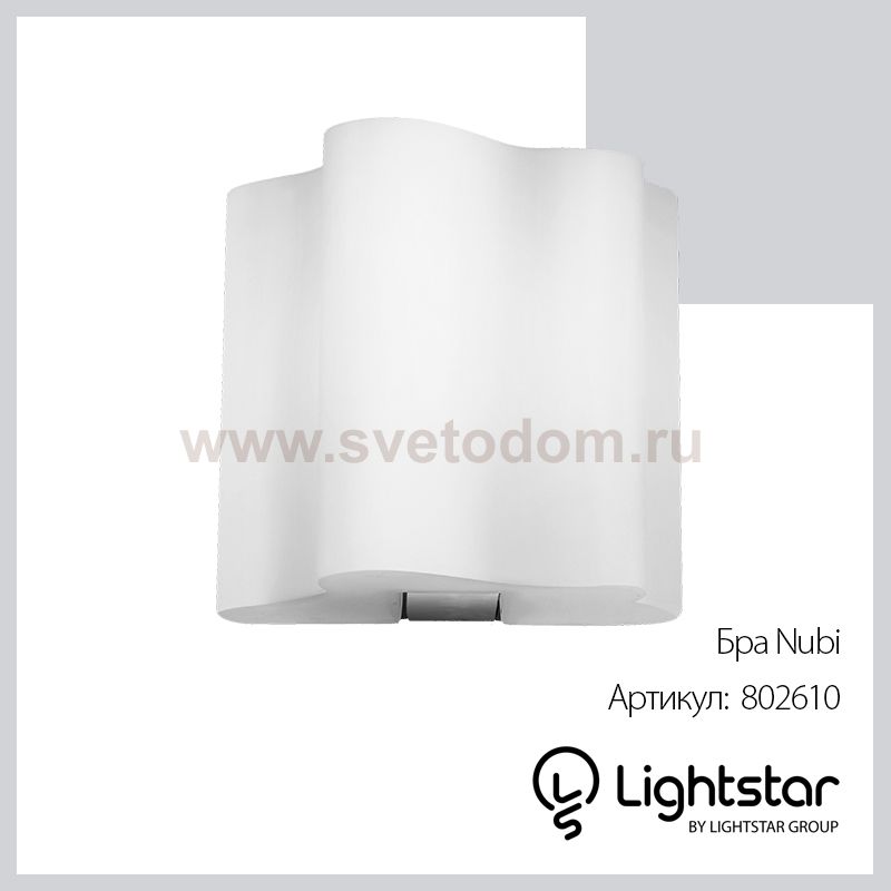 Коллекция Nubi похожа на воздушные облака. Различная конфигурация светильников позволяет подобрать тот, который будет отлично смотреться именно в вашем уникальном интерьере. Белый дневной свет рассеивается с помощью матового стекла. Лампы спрятаны в глубине плафонов, чтобы световой луч не бил в глаза. Такой светильник будет идеальным дополнением кухни, спальни или детской. Эстетика мягких переходов и матового свечения живет в бра Nubi от бренда Lightstar. В его дизайне отсутствуют углы или ломанные линии, стекло плафона будто обволакивает ровно струящийся изнутри свет. Воздушное Nubi добавит нежные нотки в любой интерьер.
