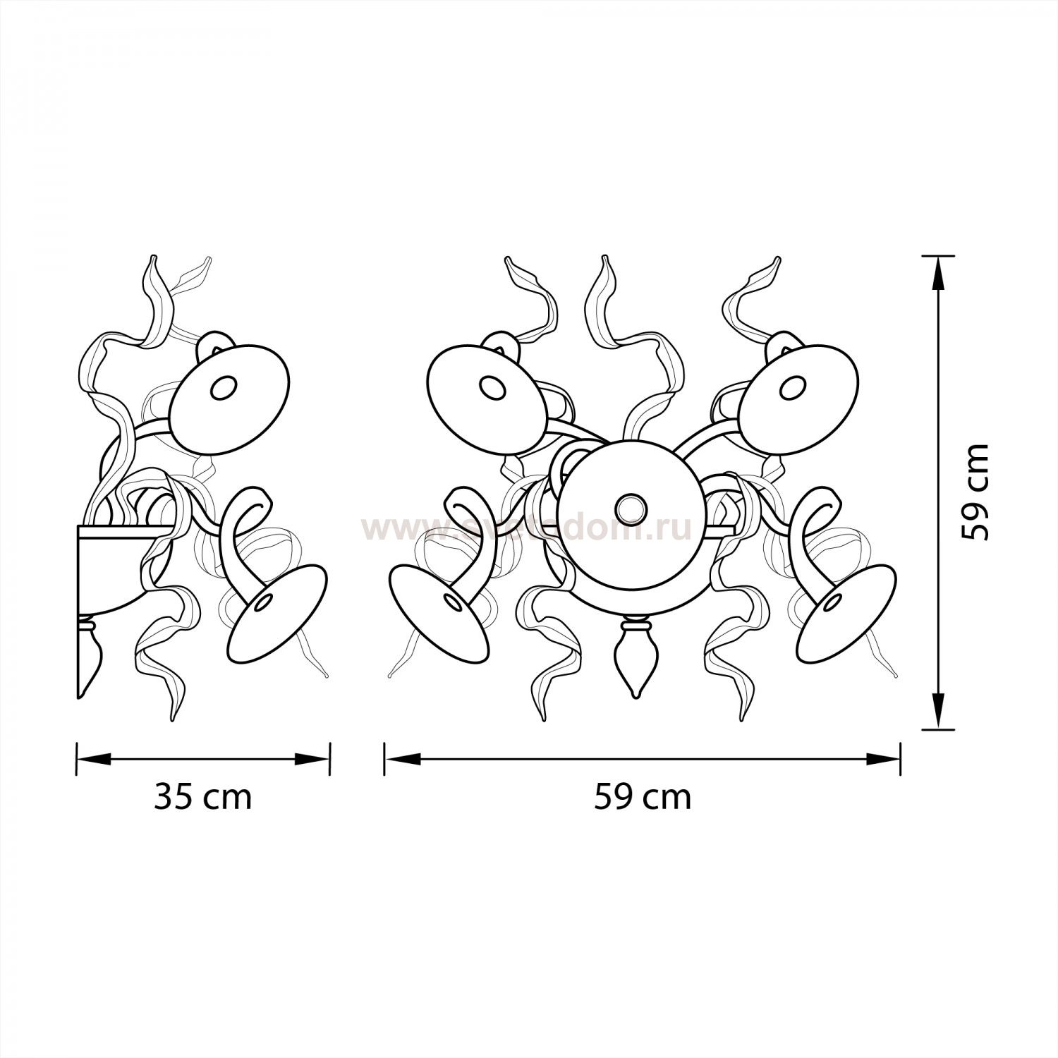 Высота min-max (см): 54; Ширина (см): 59 ; Глубина (см): 34; Вес (кг): 4,5 ; Кол-во ламп: 5хG4 12V; Мощность max (W): 20; Цвет основания/цвет стекла или абажура:COGNAC