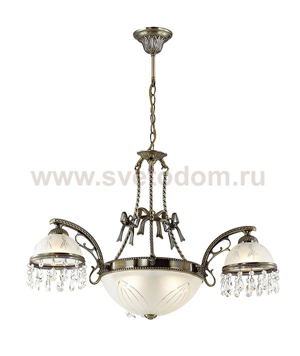 Арматура, декор: металлическая арматура украшена металлическими элементами; плафон: стекло с металлической окантовкой, украшенной хрусталем Материал плафона