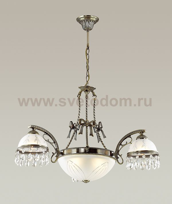 Люстра 2989/5A серии Avifa оформлена в классическом стиле. Люстра состоит из стеклянных плафонов с металлической окантовкой, украшенной хрусталем, и классической бронзовой арматуры, дополненной изящными металлическими элементами. Данная модель сразу привлекает к себе внимание благодаря сиянию хрусталя и классической форме. Цоколь E27. Мощность 5x60W. Нет ламп в комплекте.