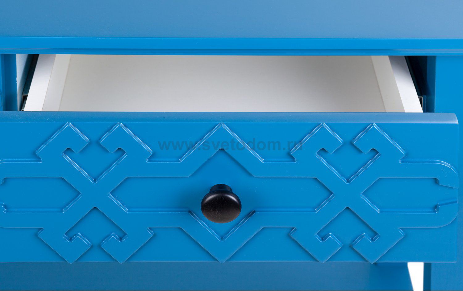 Голубая современная консоль из массива бука и МДФ Friz blue универсальной модификации, способная менять назначение в зависимости от роли, отведенной ей владельцем. Модель в гостиной выступает в качестве классической консоли, в спальне способна стать туалетным столиком, а в детской – подставкой для игрушек и других принадлежностей ребенка. Выполнена в синем цвете из массива бука и МДФ, отличается практичностью и эффектным внешним видом.