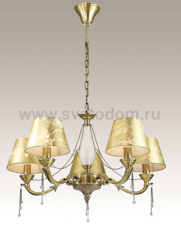 Отличный вариант домашнего освещения Odeon light Люстра 3279/5 серии FEMINA оформлена в классическом стиле. Люстра состоит из тканевых абажуров с экстравагантным покрытием металлик и арматуры бронзового цвета, украшенной цепочками с бусинками. Данная модель обладает непревзойденной оригинальностью, сохраняя при этом классическую сдержанность. Цоколь E14. Мощность 5*40W. Нет ламп в комплекте.