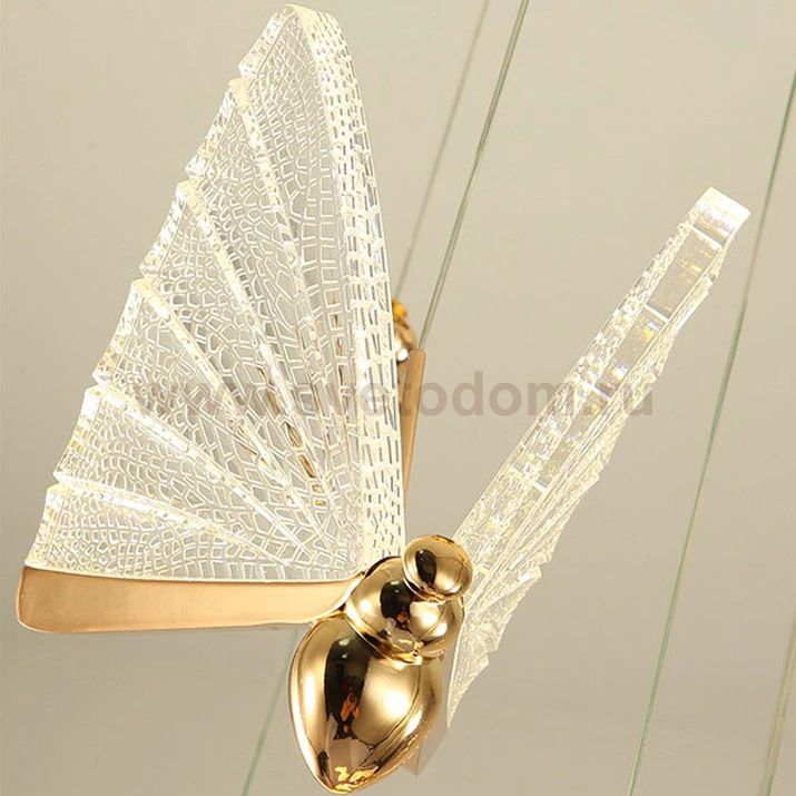 Подвесной светильник Delight Collection OM8201008-3 rose gold с тремя подвесами на круглом основании с отделкой розовое золото. Подвесы в форме бабочек с крыльями из прозрачного стекла. |