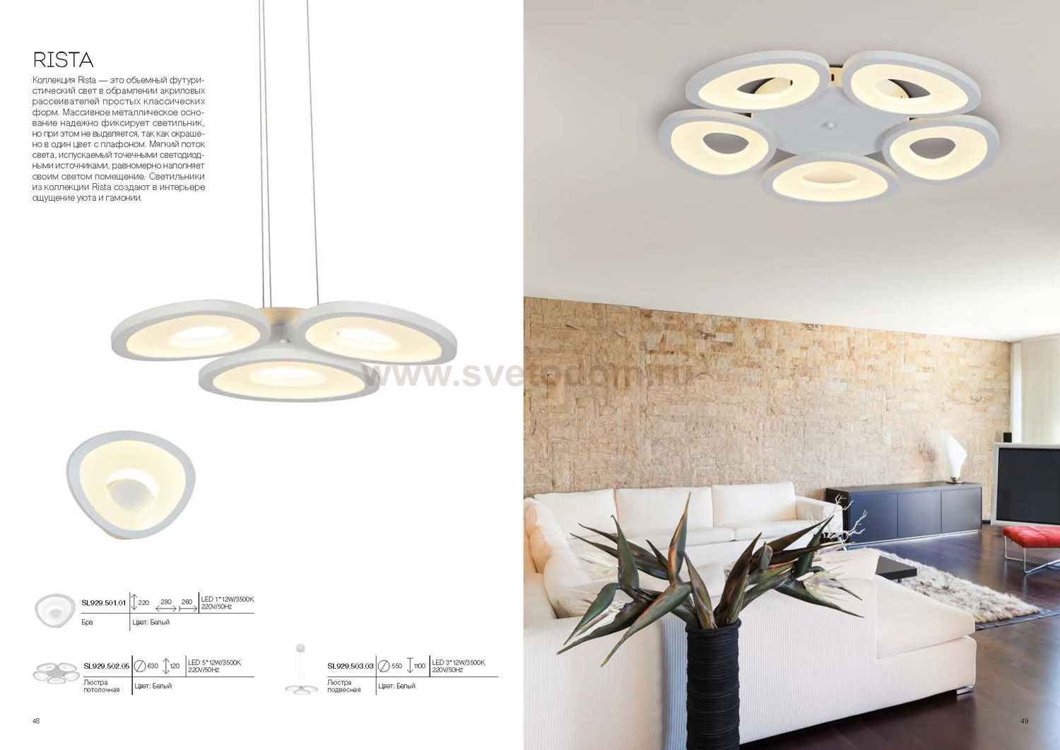 Если Вы настроены купить светильник модели SL92950303, то обратите внимание: Коллекция Rista - это объемный футуристический свет в обрамлении акриловых рассеивателей простых классических форм. Массивное металлическое основание надежно фиксирует светильник, но при этом не выделяется, так как окрашено в один цвет с плафоном. Мягкий поток света, испускаемый точечными светодиодными источниками, равномерно наполняет своим светом помещение. Светильники из коллекции Rista создают в интерьере ощущение уюта и гамонии.