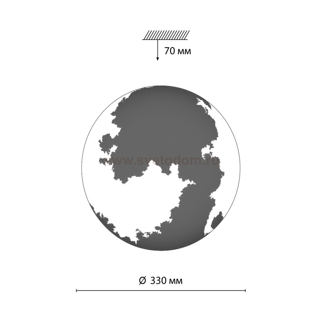 Светильник 3084/CL линии MON состоит из металлического основания (базы) и пластикового рассеивателя. Материал рассеивателя - высококачественный пластик марки PMMA 2.0 с глянцевой поверхностью, без текстуры. На плафон нанесена полноцветная печать - рисунок поверхности Луны. Форма плафона: круглая, декорирована съемным ободом из пластика черного цвета. Степень защиты IP43 позволяет использовать светильник в определенных зонах влажных помещений. В комплект входит заменяемый LED модуль с линзами, мощностью 30Вт, которая соответствует лампе накаливания 260Вт. Источник света имеет комфортную цветовую температуру 4000К (белый свет).