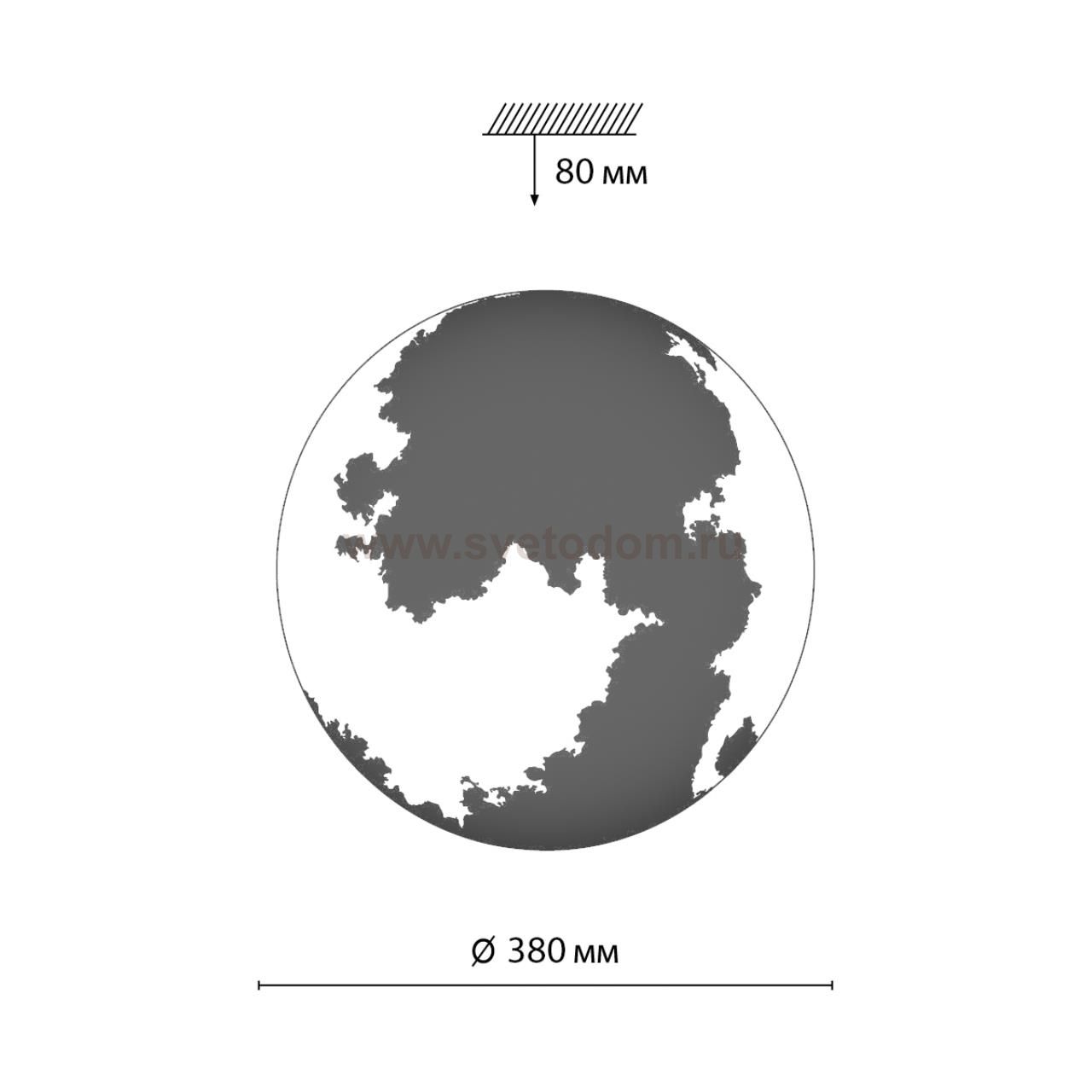 Светильник 3084/DL линии MON состоит из металлического основания (базы) и пластикового рассеивателя. Материал рассеивателя - высококачественный пластик марки PMMA 2.0 с глянцевой поверхностью, без текстуры. На плафон нанесена полноцветная печать - рисунок поверхности Луны. Форма плафона: круглая, декорирована съемным ободом из пластика черного цвета. Степень защиты IP43 позволяет использовать светильник в определенных зонах влажных помещений. В комплект входит заменяемый LED модуль с линзами, мощностью 48Вт, которая соответствует лампе накаливания 350Вт. Источник света имеет комфортную цветовую температуру 4000К (белый свет).