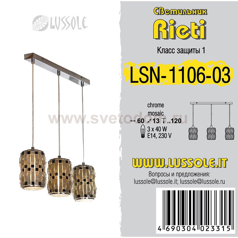 44 Отзывы Светильник тройной подвес Lussole LSN-1106-03Пока нет отзывов об этом товаре, напишите и он обязательно появится после модерации! Оставить свой отзывПохожие товары Другие товары магазина Фото