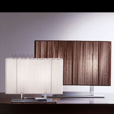 Настольная лампас хромированной структурой и абажуром. Рассеиватель выполнен из тонких нитей, создавая шелковый эффект. Возможные варианты цветов: слоновая кость, табак, черный.