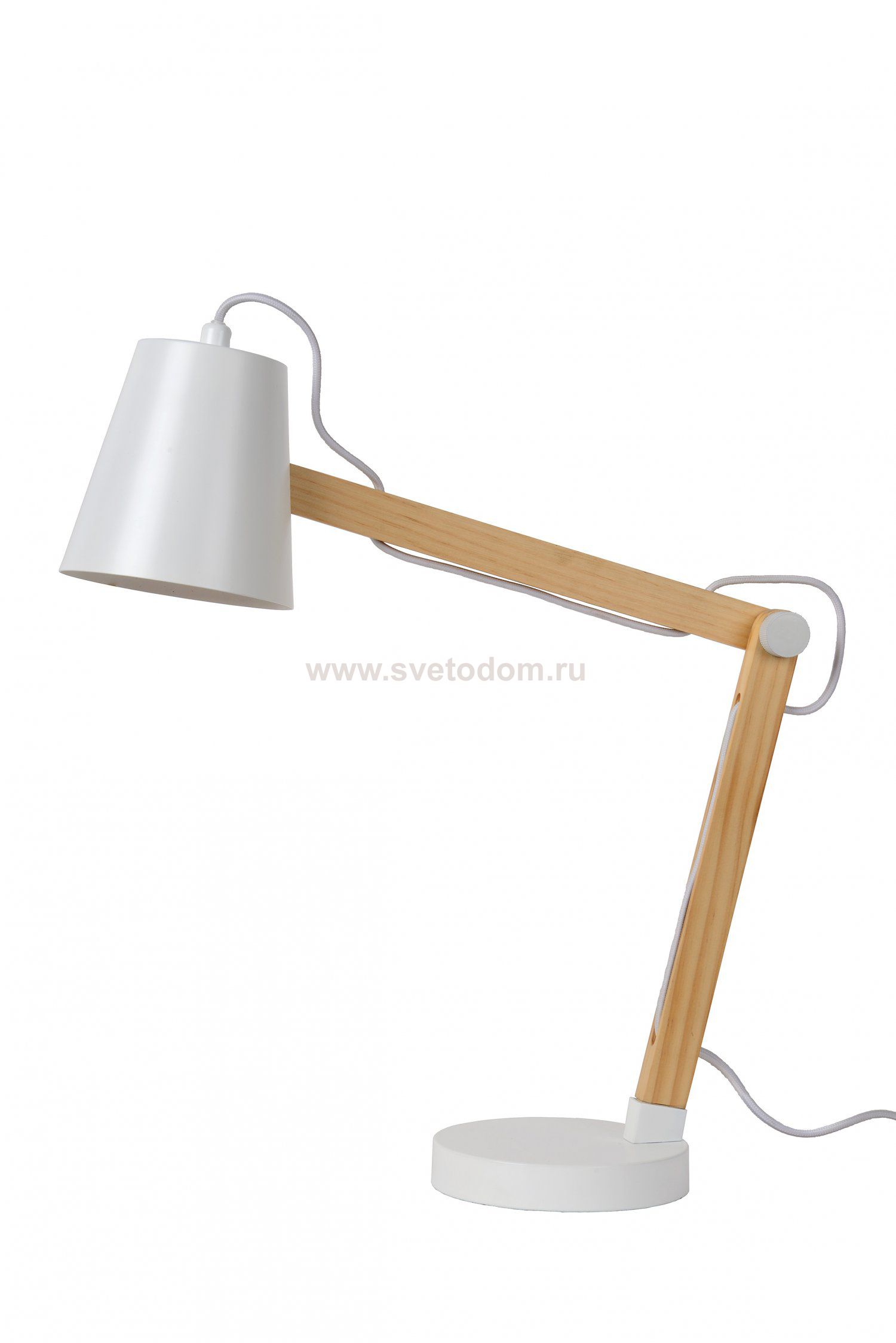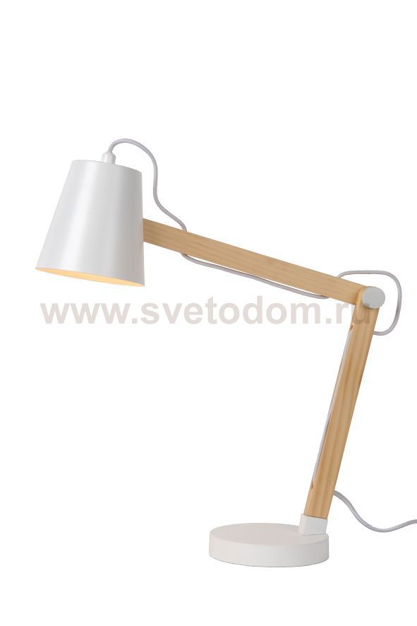 Playful, hip and super-functional. This is Tony. A modern desk lamp that not only entices you with its looks, but also with its performance. The arm is completely adjustable. You thus easily reach a height of 69 centimetres: perfect for being able to work with concentration. But do not let the terrific appearance distract you! The white details and lamp shade combine very beautifully with the wooden arm. Tony fits perfectly on the desks of hip youths, but also in office environments or in your home office.