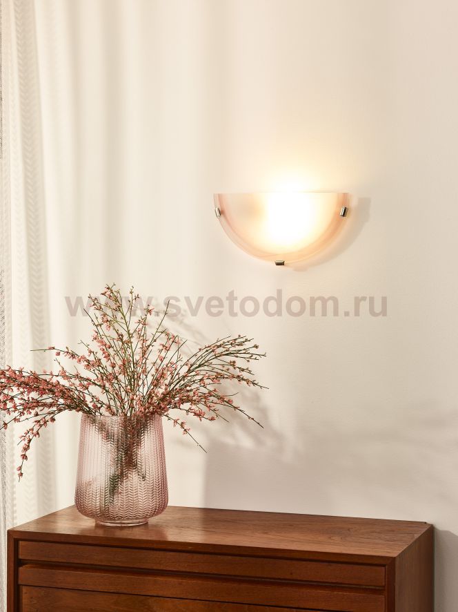An absolute caress for the eye! The Albastro wall lamp in light pink alabaster glass with champagne-coloured accents is very unique. With the practical lamp, you immediately create the right mood in the hallway, bathroom or kitchen thanks to the 60W light source. You can quickly connect a dimmer and have more options for adjusting the light intensity. General lighting or softer mood lighting – everything is possible. This sophisticated classic is 30 centimetres deep and 7.5 centimetres wide. The height is 15 centimetres.