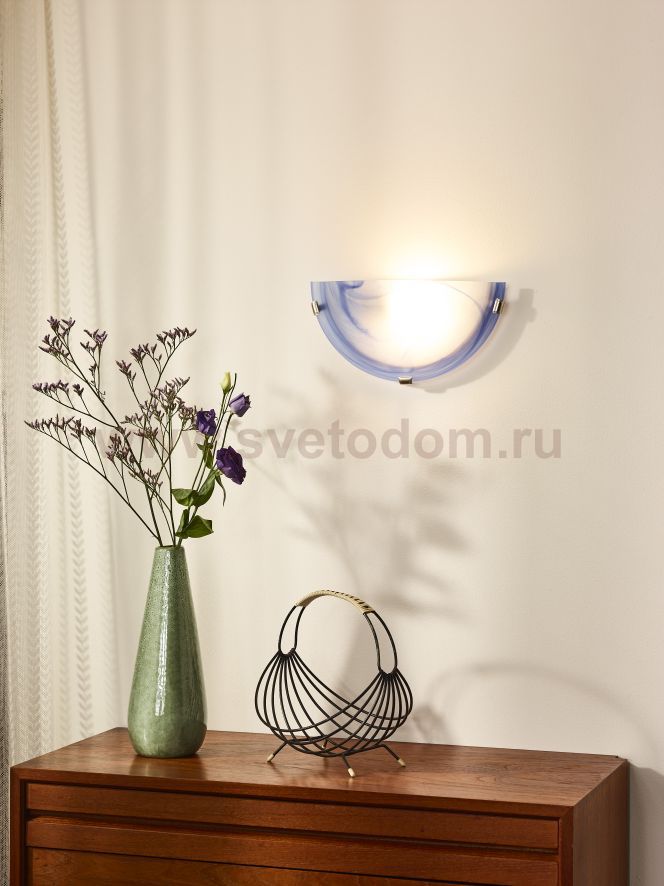 A classic and tasteful wall lamp – that is how you can best describe the Albastro wall lamp. The lamp in pastel blue alabaster glass with champagne-coloured accents is great in the hallway, kitchen or bathroom. The 60W light source is powerful enough for a beautiful atmosphere in the house. In addition, you can simply connect this sophisticated lamp to a dimmer so that you can adjust the light intensity. The Albastro lamp is 30 centimetres deep and 7.5 centimetres wide. The height is 15 centimetres. A real pleasure for the eye!
