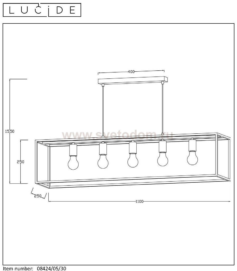 Lucide ARTHUR - Pendant light - 5xE27 - Black Штрих-код
