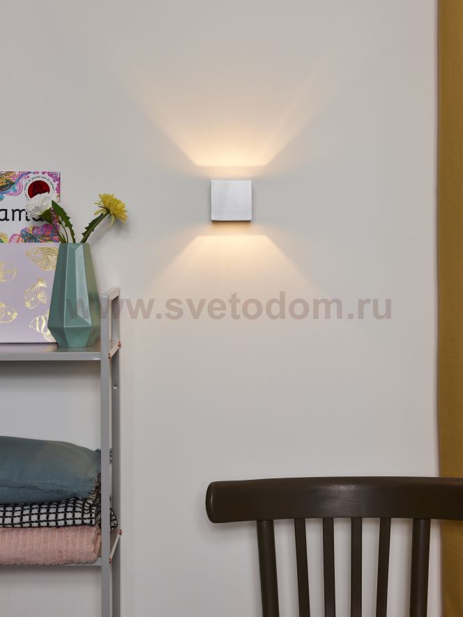 The wall lamp Lucide Devi is a beautifully finished aluminium armature light. This wall lamp, often used by architects, best comes into its own on a lovely stucco wall or a tough, coarse masonry wall. This wall lamp namely provides a beautiful hourglass-shaped beam. With a back plate of 10,5cm x 8cm, the Devi is easy to place over a central box. The Devi is made with a G9 high-voltage fitting, but is delivered without a light source. Choose a traditional G9 halogen spot (max 42W) or an energy-saving dimmable or non-dimmable G9 LED light source. LED or traditional halogen, because there is no transformer in the Devi, this armature light is certainly very simple to dim (with a basic dimmer - not included). The Devi is available in the colours of white and aluminium.