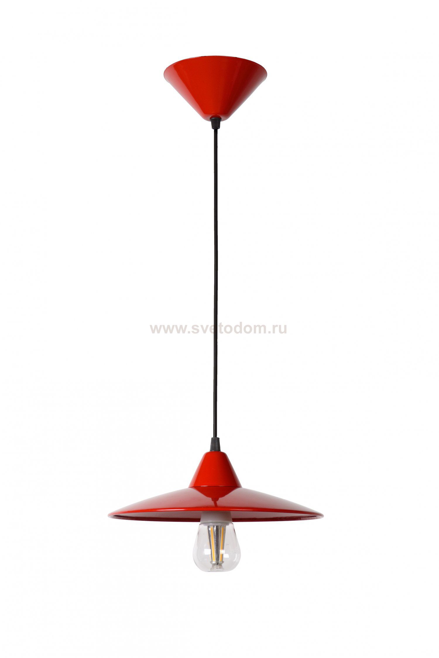 Do you want to stand out? Great. This Peter pendant lamp is something for you. Gleaming and firecracker red. The sturdy, metal lamp feels quite at home in a cottage environment where it provides warm, white light of 2700 K. Thanks to its E27 fitting and included LED bulb, Peter is an environmentally-friendly pendant lamp for your bedroom or living room ceiling. Eat with the whole family in the right atmosphere: this bright lighting element is compatible with a dimmer. The fire-red lamp preens with an energy-efficient label.