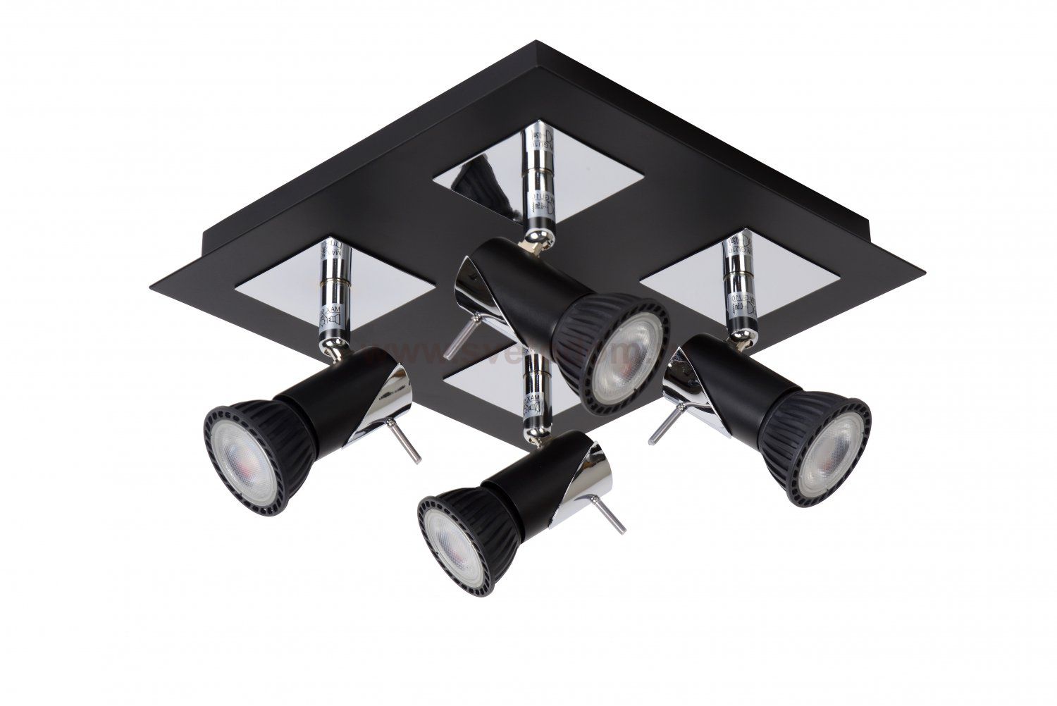 The Brackx ceiling lamp in chrome and black is the pinnacle of spotlights. The four spots are simple to set and provide the best lighting results in your interior. The spots are well placed in the living room or bedroom. With the placement of a dimmer, you can dim and control the lamp for an ideal atmosphere. In length, the lamp measures 23 centimetres, and the breadth is also 23 centimetres. The height is a maximum of 12 centimetres. And ideal lamp for your interior!