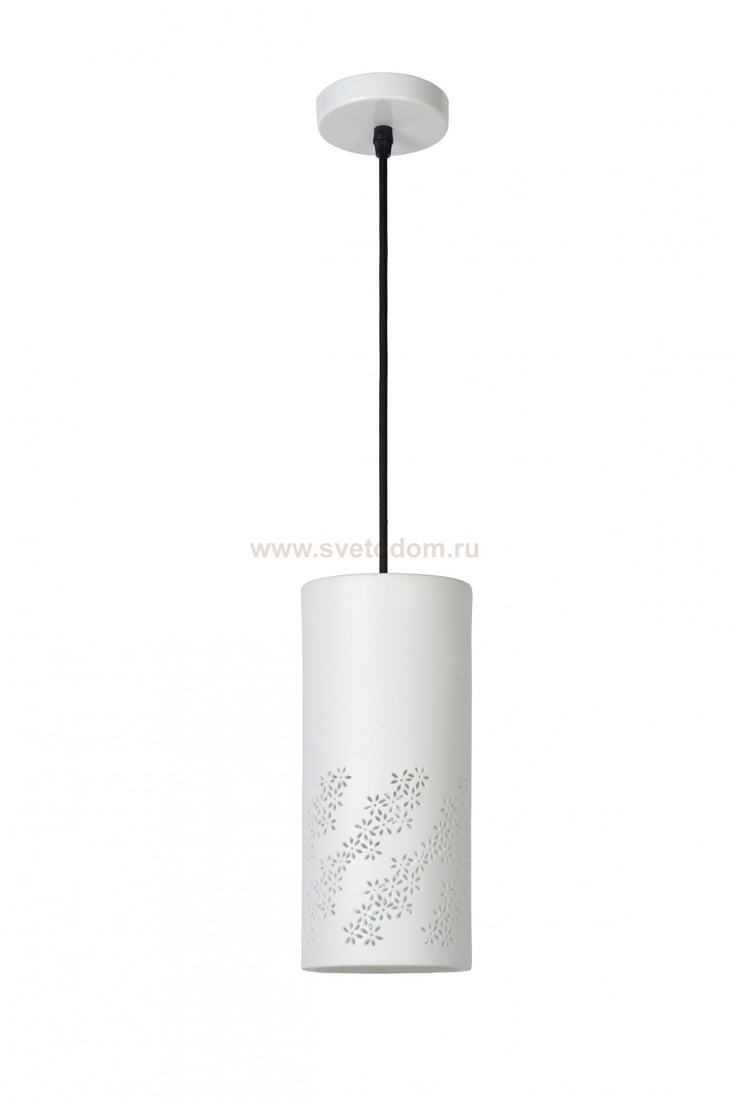 A cosy tube made of ceramic. This pendant lamp carries a beautiful motif and thereby creates a cosy light distribution. This is a beautiful design for your living room, hall or bedroom. The pendant light can easily be connected to an external dimmer and the use of an LED light source is also possible. You determine the height of the lamp at installation thanks to the large cord. The ceramic tube is 30 centimetres high.