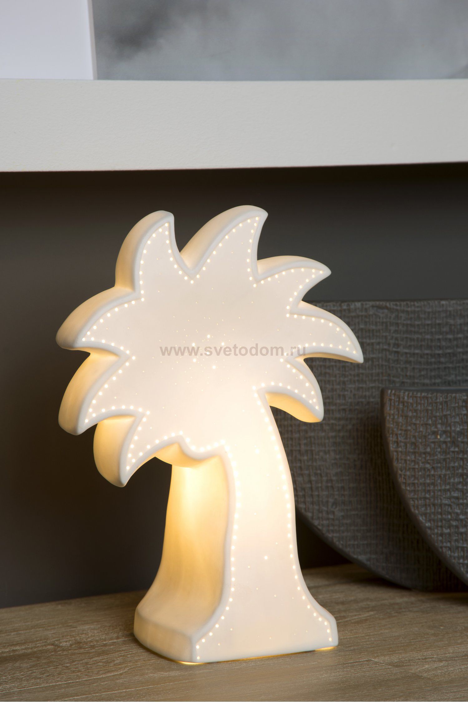 That holiday feeling, distilled into a lamp, that is this Palm. The creative design of this table lamp made of high-end ceramics has a brilliant result, literally and figuratively. You let the palm tree light up with the on and off switch on the cord. Easy and relaxing. Whether you use it as playful eyecatcher in your living room or bedroom or as fantasy for the children’s room, Palm whisks you away to that blissful, sunny destination.