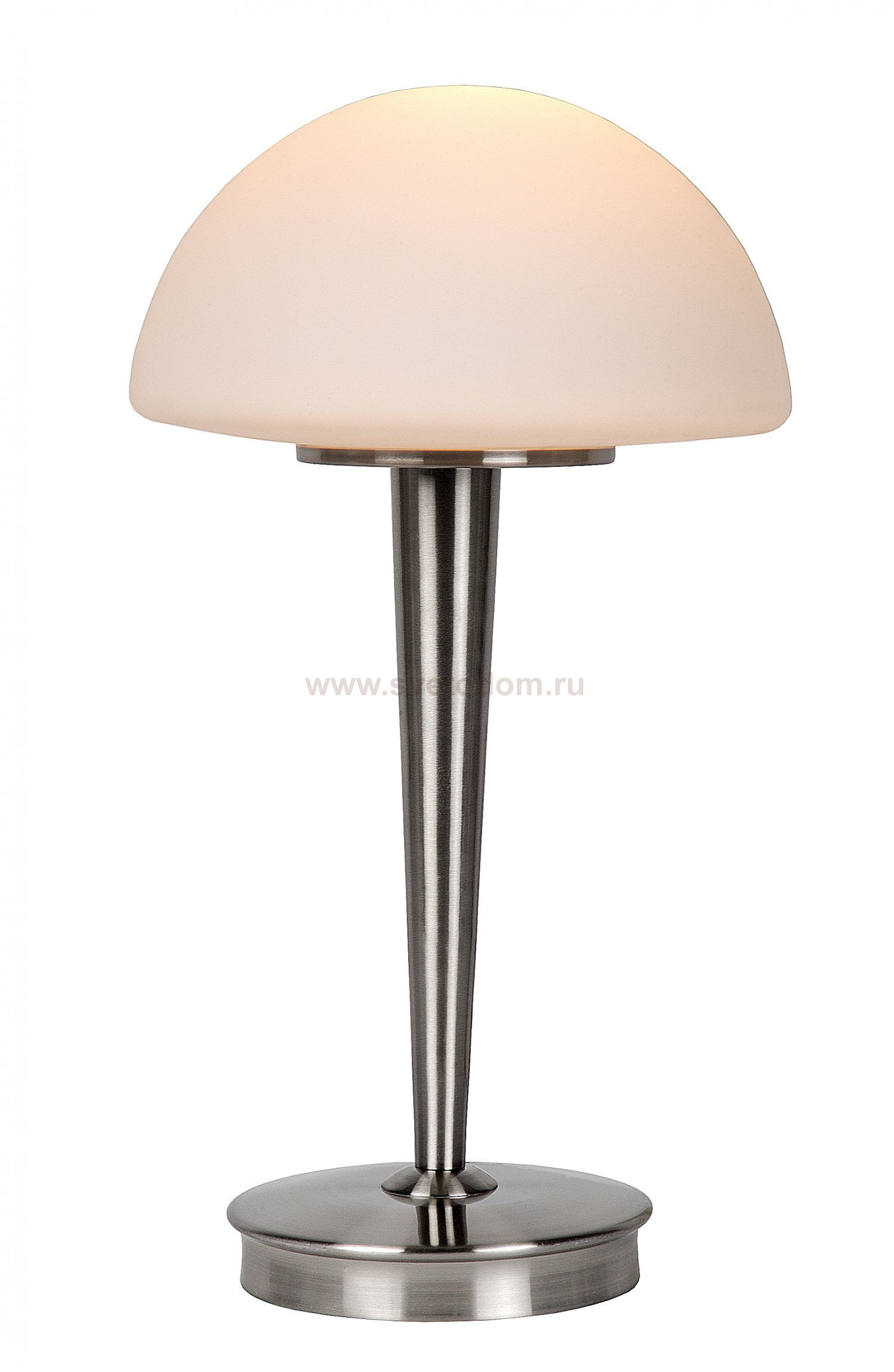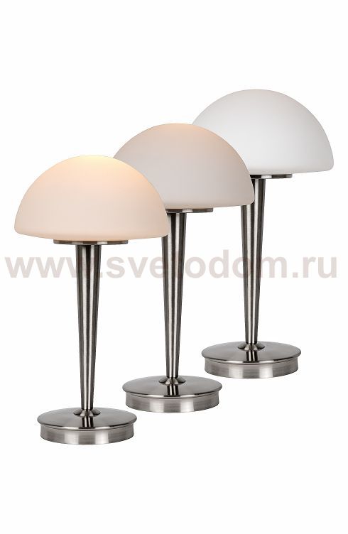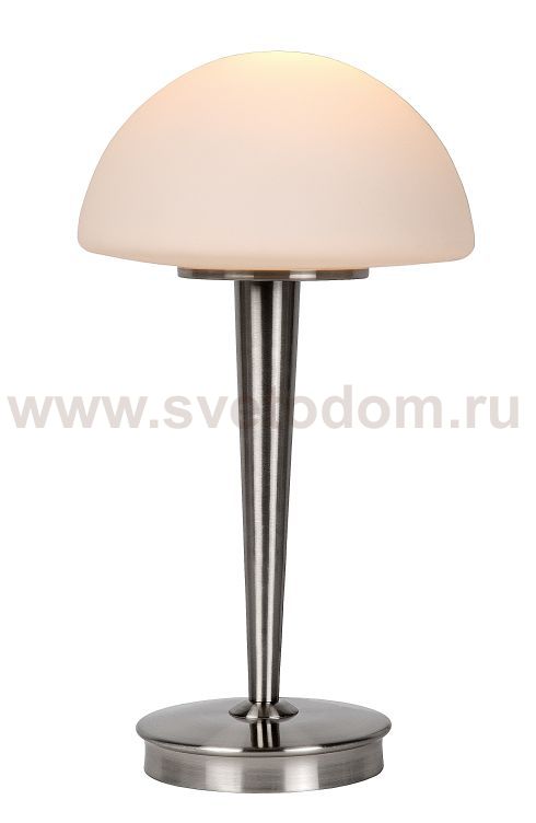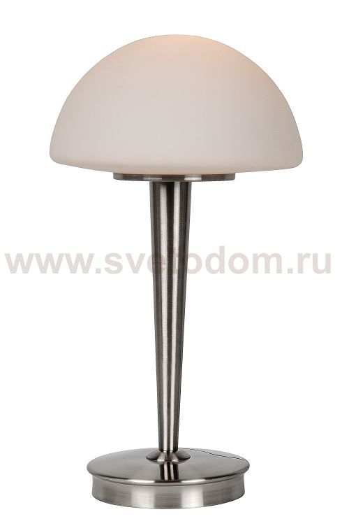 A satin-finish chrome table lamp with an opal-white glass cover - that is the TOUCH from Lucide. You can switch on the lamp by touching the steel with your finger. By repeating this procedure, you can switch the lamp on and off or set it to one of 3 levels. Due to the neutral colour combination, this touch-table lamp can be combined with almost any interior.