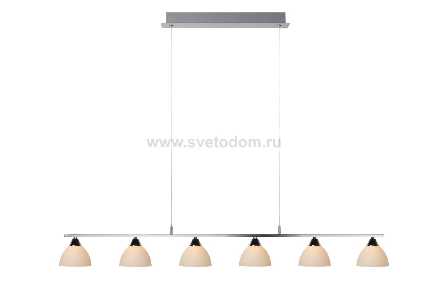 Ilina is a beautiful and especially very decorative pendent lamp that hangs beautifully above a cosy covered dining room table, a pleasant kitchen island or a great bar in a modern interior. Ilina consists of a metal base in chrome with a full 6 LED light points protected by modest, stylised glass lamp shades. The included LED lighting is integrated, bright and warm, and has a very long lifespan. In length, this pendent lamp measures 112 centimetres.