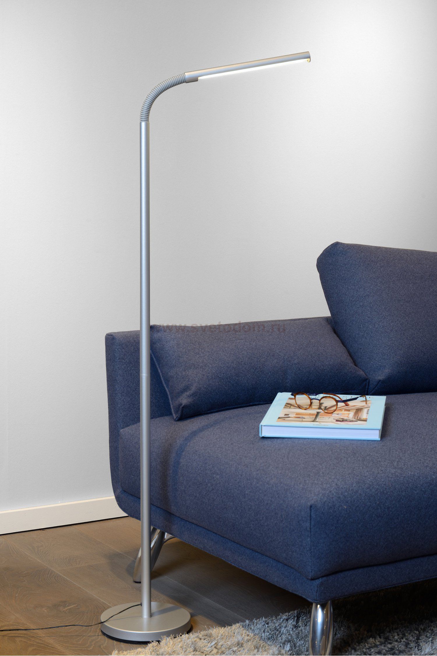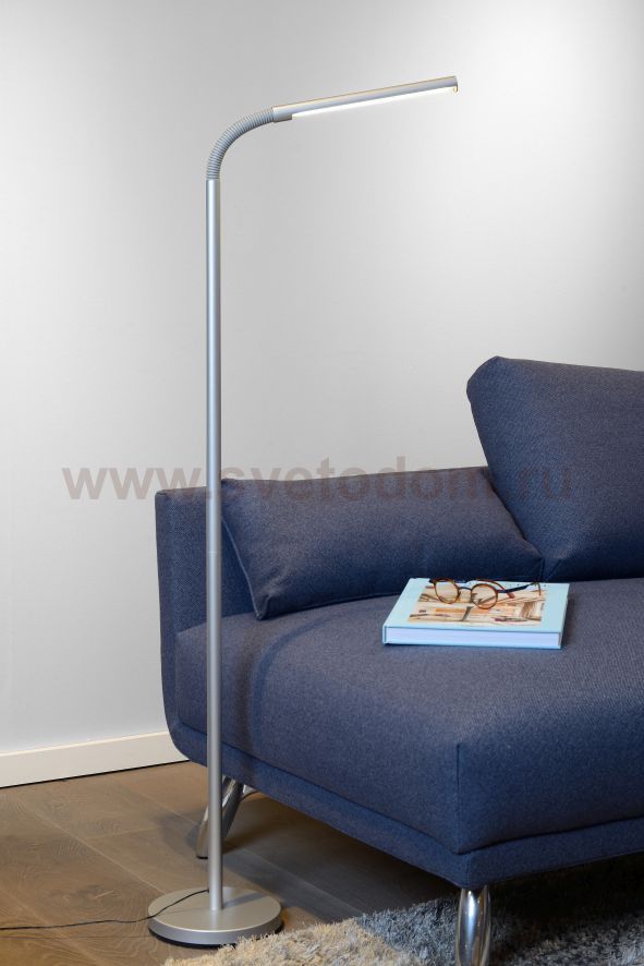 Soft and yet sleek lines. The standing lamp Gilly combines them effortlessly. This lamp has integrated LED lighting with a pleasant and bright light. This version in silver-grey, thanks to the directable arm, is a maximum of 153 centimetres high. A beautiful metal flexion makes the connection between light point and standing base. This Gilly is outstandingly suited to direct into a modern reading nook, but can also be used perfectly as a desk lamp in your home or office.