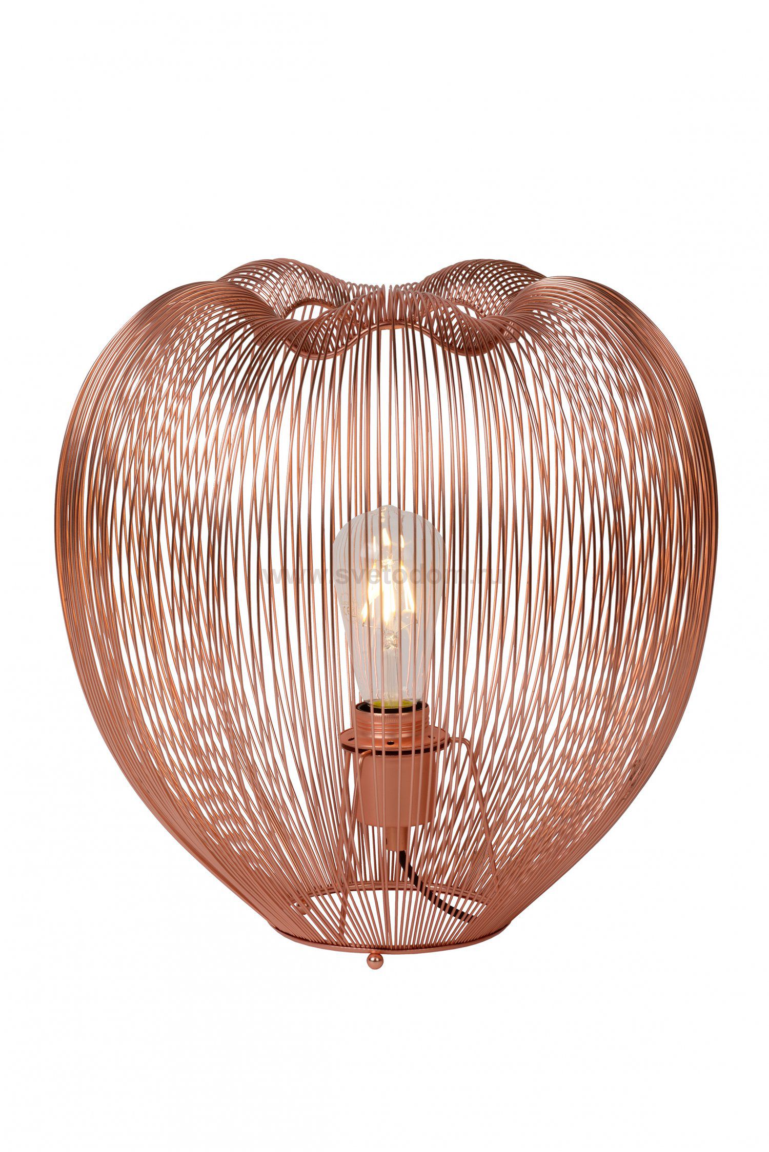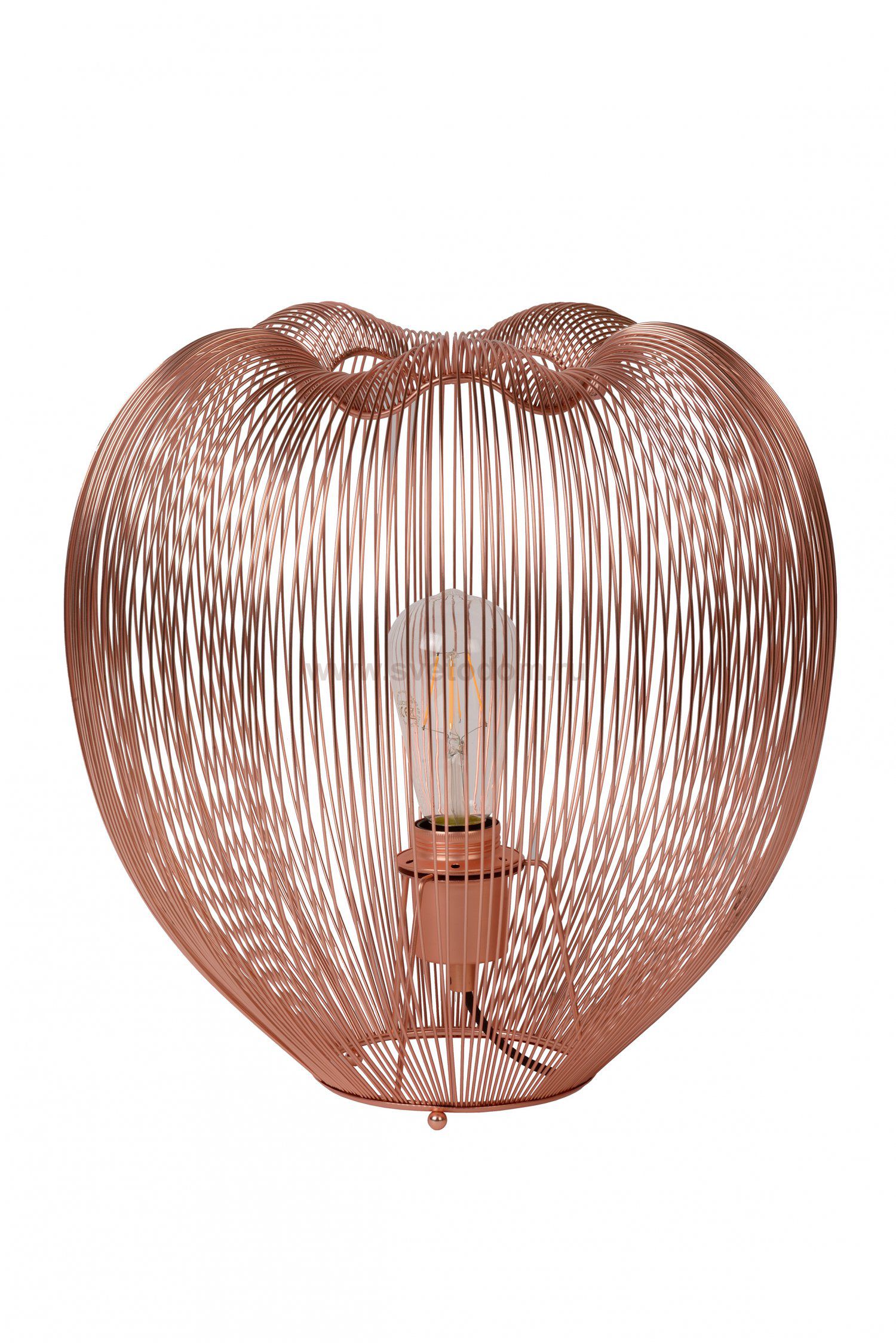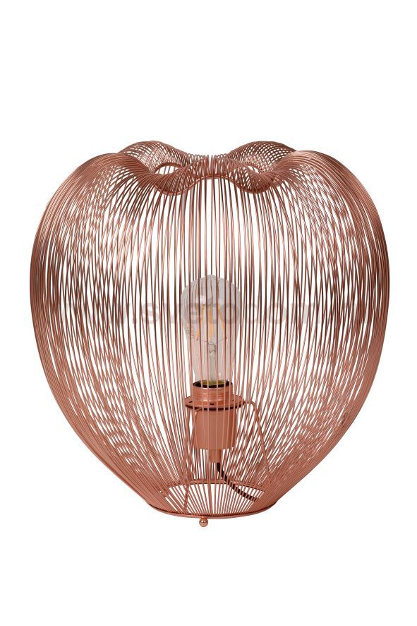 Wirio has a unique and exotic character. You place the (LED) light source for this table lamp in a modern bird's nest of red copper wires. The fine lattice is imposing and has a diameter of 35 centimetres. Its network of wires is formed of red copper. Wirio has an E27 fitting and stands alone effortlessly. Wirio is a lighting element with a very striking frame in a special material. A lamp that pleasantly surprises any guest at your table.