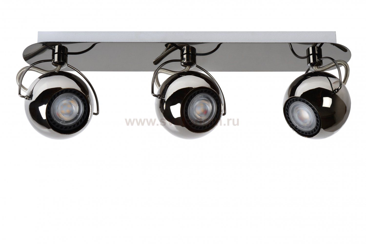 A ball-shaped trio with a trendy design. Mini comet is a three-fold LED spot that stands out due to its futuristic design in black chrome. In addition, the design is not only progressive, the use of three included LED spots also provides a durable future. The LEDs are also replaceable. The base of the three-fold spot is a minimum of 40 centimetres deep. Mini comet is applicable in a modern interior, in the living room, kitchen, bedroom or entryway.
