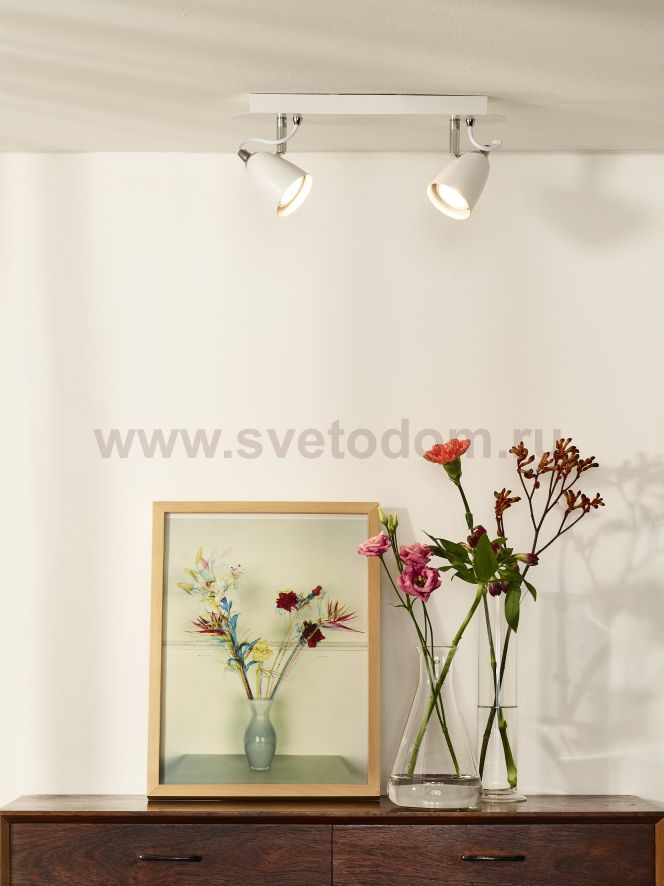 Snow White is seeing double. This white Ride-LED spot from Lucide does everything double. Two lights and their GU10-fittings hang from this modern lamp, together with an LED light source. Take control of the white, adjustable lights yourself, and decide which parts of your bedroom receive warm, white light of 3000 K. Connecting this lighting to a dimmer is a piece of cake. Combine the power of multiple Ride-LED spots above your bed.