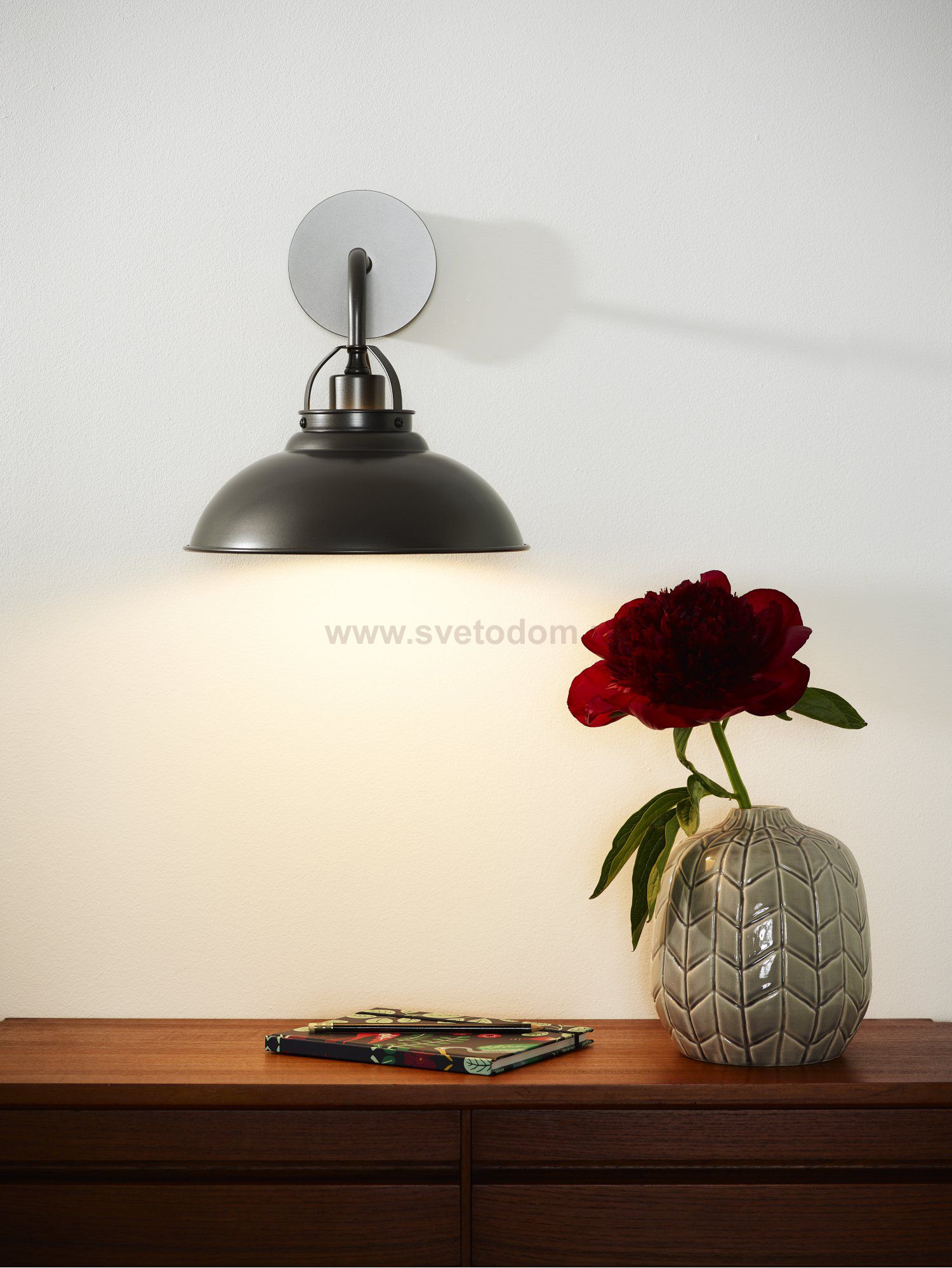 A classic shape with an optimal range. This wall light, named Hamois, has a beautiful appearance due to its outstanding proportions and shapes. The armature is reminiscent of industrial illumination from the past. Both the lamp shade – with a diameter of 26 centimetres – and the beautiful bent arm are made of metal and have a grey colour in metal lacquer. This wall lamp fits beautifully into a living room, entry or bedroom of a rural home or cottage. And yes, you can connect Hamois to a dimmer.