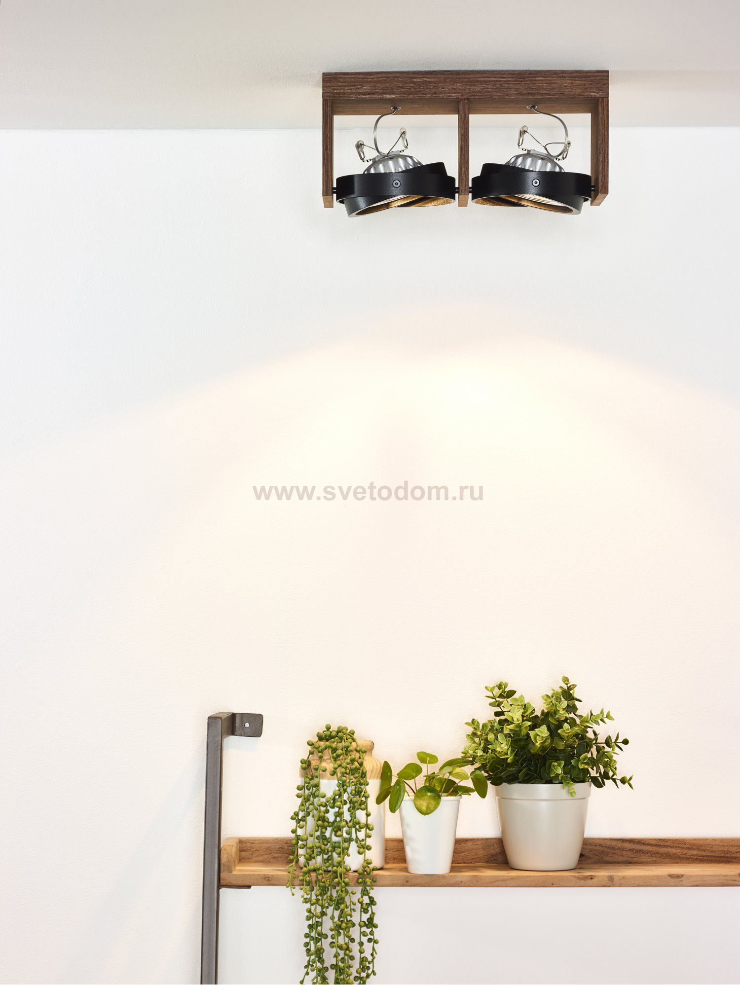 Two light sources joined in brotherly love. Zett LED makes the difference with that. This high-quality ceiling spot combines metal materials with a typical wood look. Zett LED is flexible. The replaceable and included LED light source can easily be connected to an external dimmer. It should be clear: this mounted spot has several aces up its sleeve. The two spots are easy to direct, both in the same direction or each in a different direction: with Zett LED you can do anything. As a high-quality ceiling spot, it effortlessly highlights different accents. A warm look for your living room or bedroom is the pleasant result.