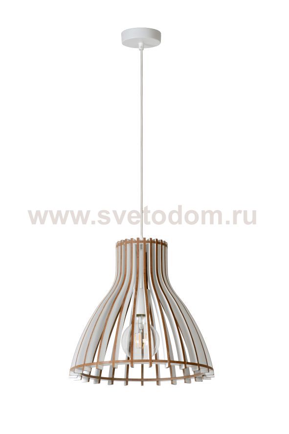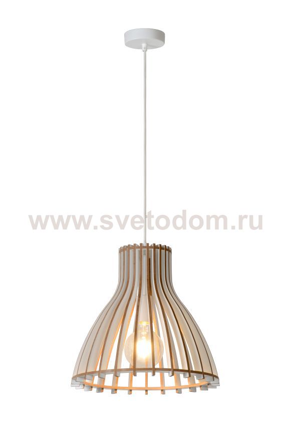 An airy grille in white wood. With the remarkable design, this hanging lamp quickly captures all hearts, certainly if you love design and interior trends. The construction and combination of an open frame with the warm appearance of the wood is a hit in modern interiors and sleek homes. It brings emotion and warmth in a daring decor. At the bottom, this hanging lamp has a diameter of 35 centimetres. The length of the cord is completely adjustable.