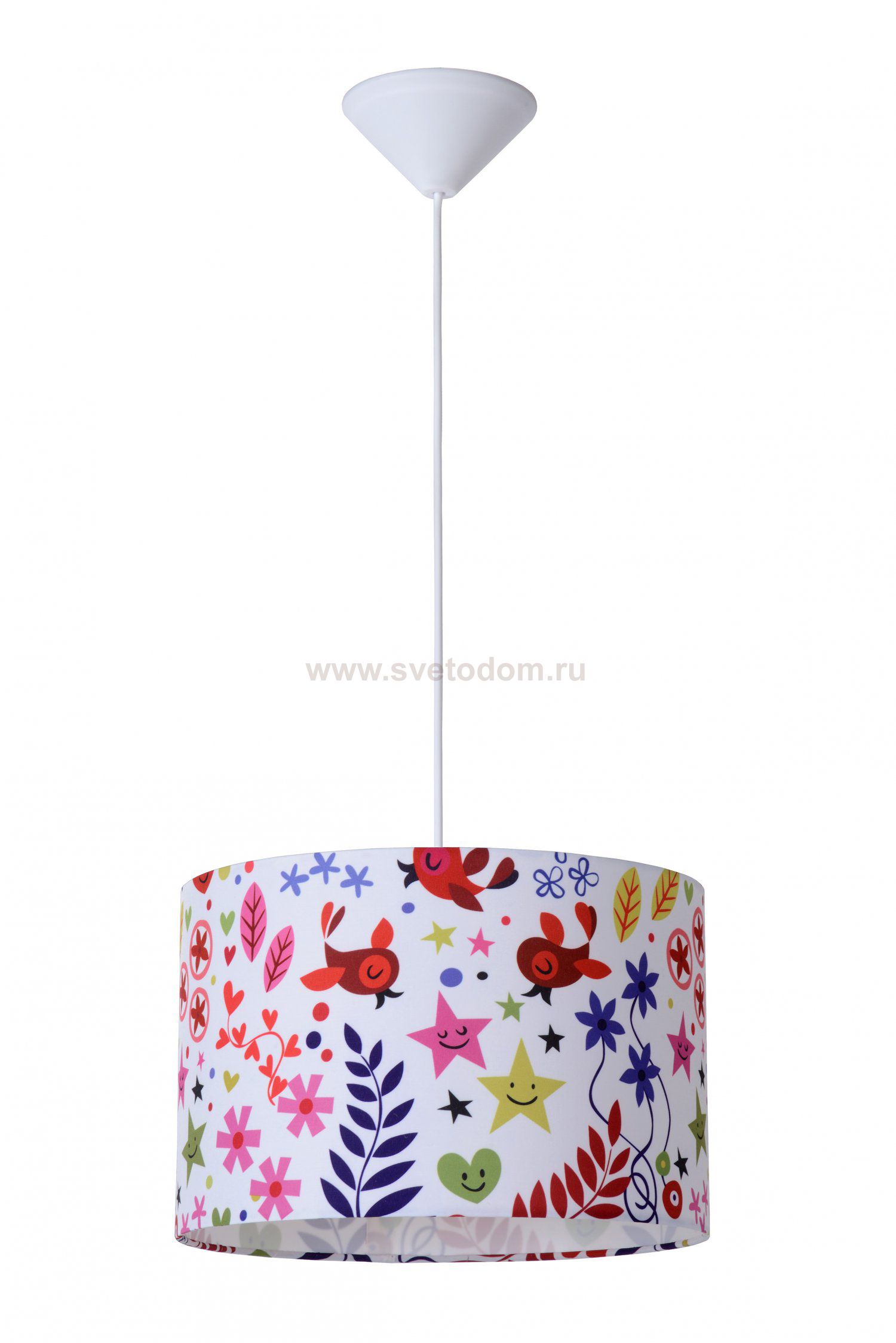 Bring some atmosphere and cheerfulness into your children's room. This pendant lamp has a very nice print on the open lampshade. On the pendant lamp, there are inviting figures that will bring a smile to your children's faces. With some childlike imagination, the hanging lamp creates a great many new adventures. The lampshade has a diameter of 30 centimetres. You choose the length of the cord yourself during installation. The lighting is specially designed for safe use in a children's room and is compatible with a dimmer.