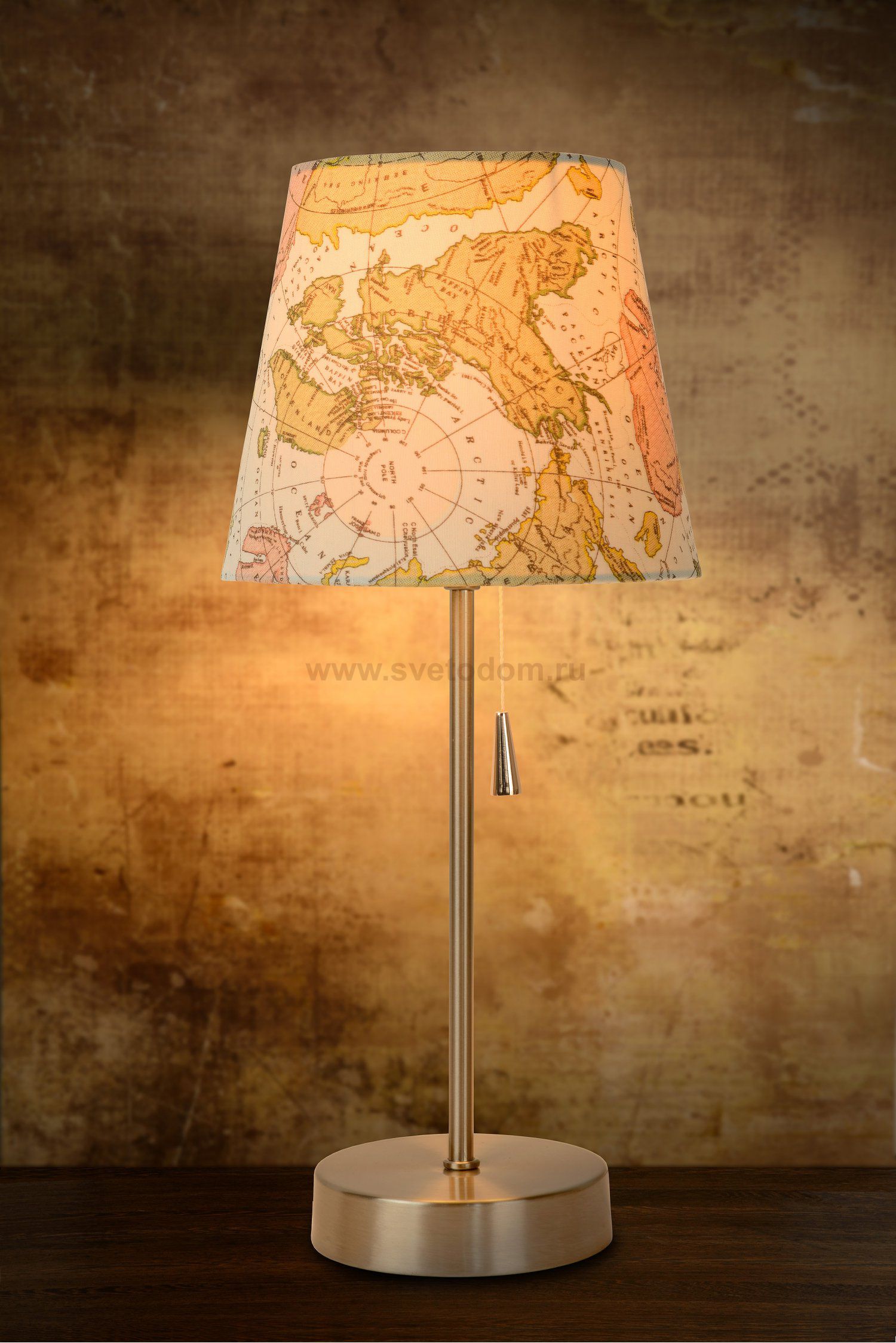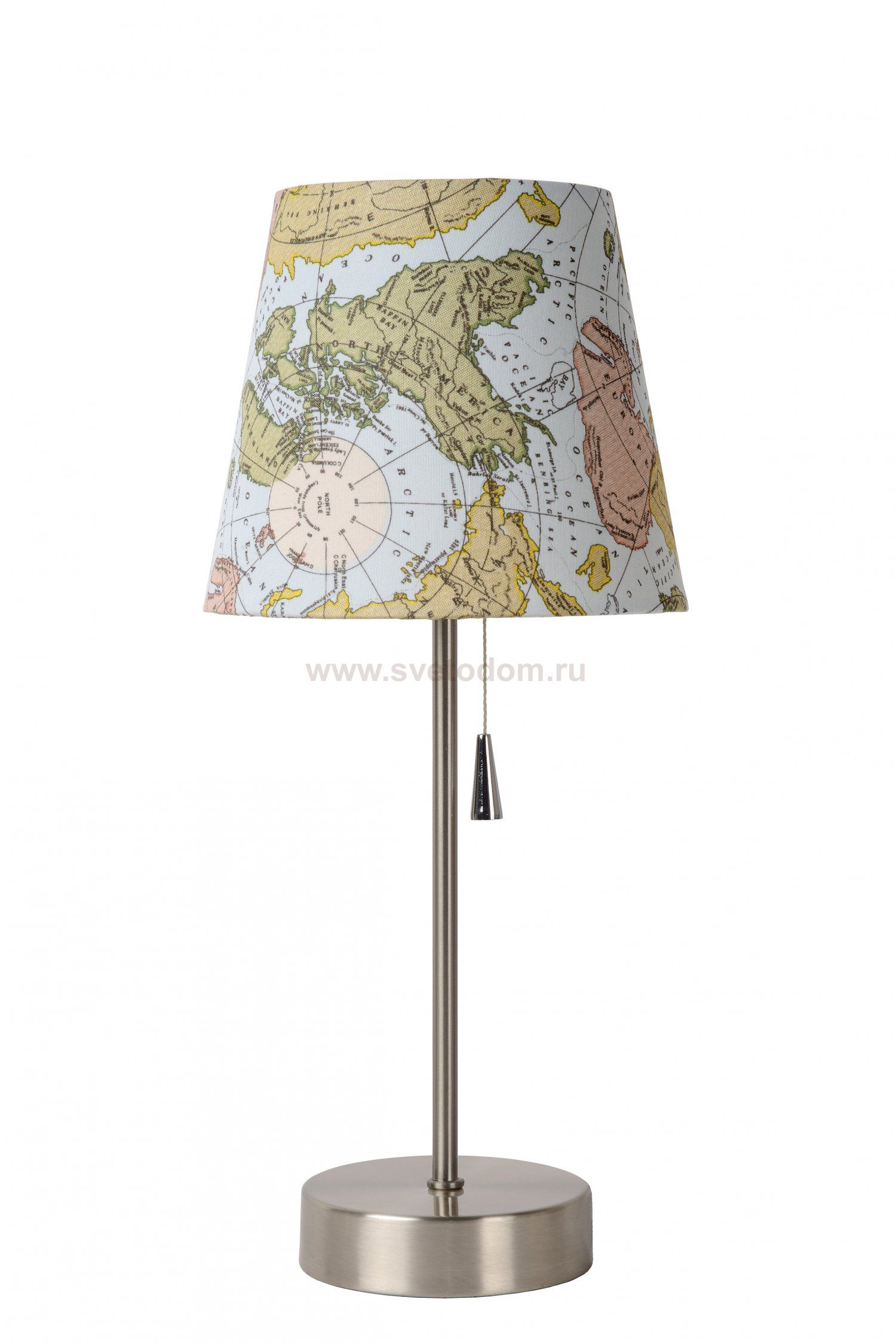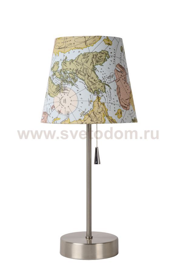 The world is illuminated! Discover the fun design of this table lamp named Yoko. The lamp shade shoes an authentic world map. Perhaps you will find your next travel destination on it? Be inspired by the geographical lines and shapes, but especially by the natural colour palette in earth tones. Certainly in a rustic interior or in a cottage, Yoko brings the right atmosphere along. The base of the table lamp is finished in matte chrome. You turn the lighting on and off with a quick tug on the switch, using the fine line.