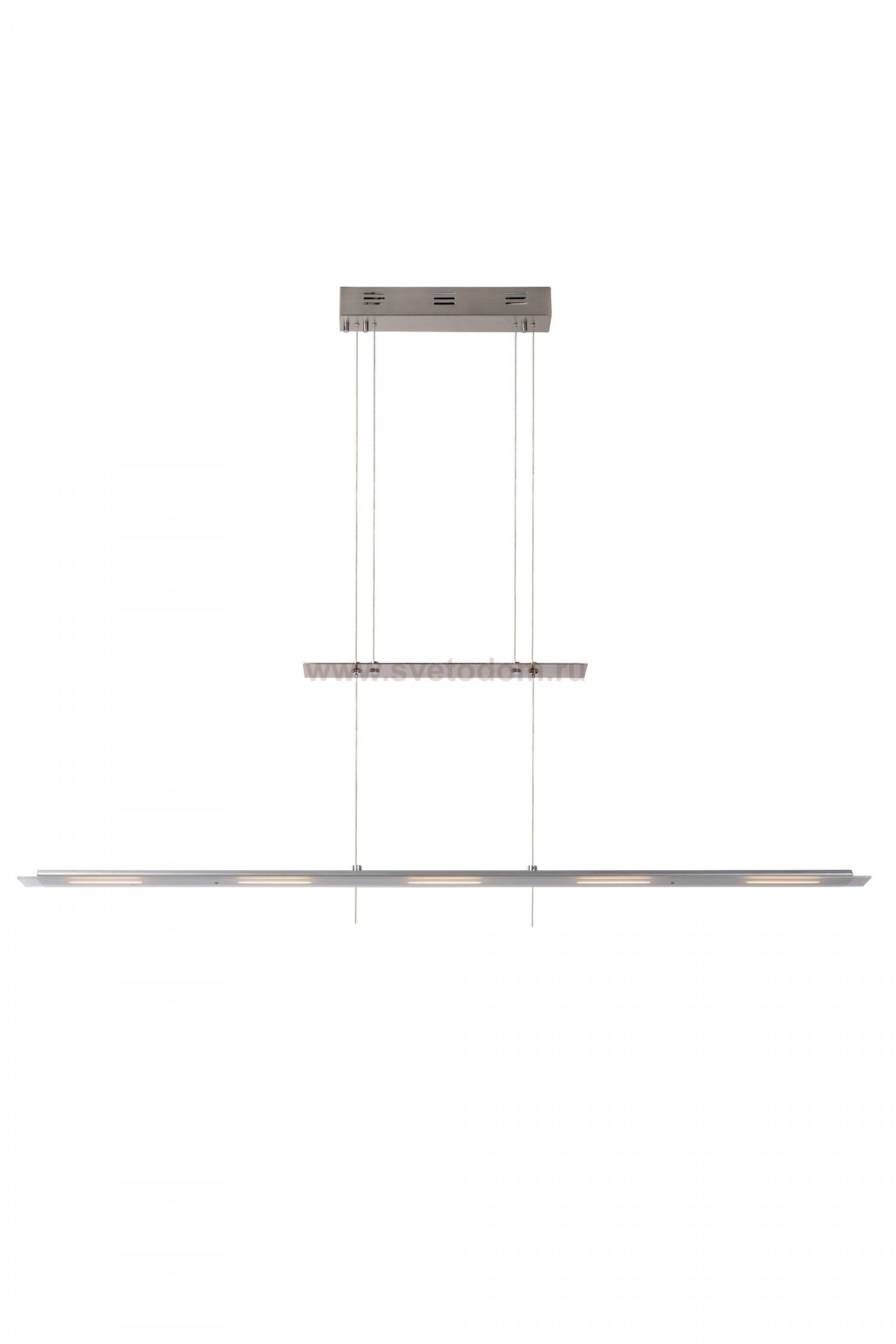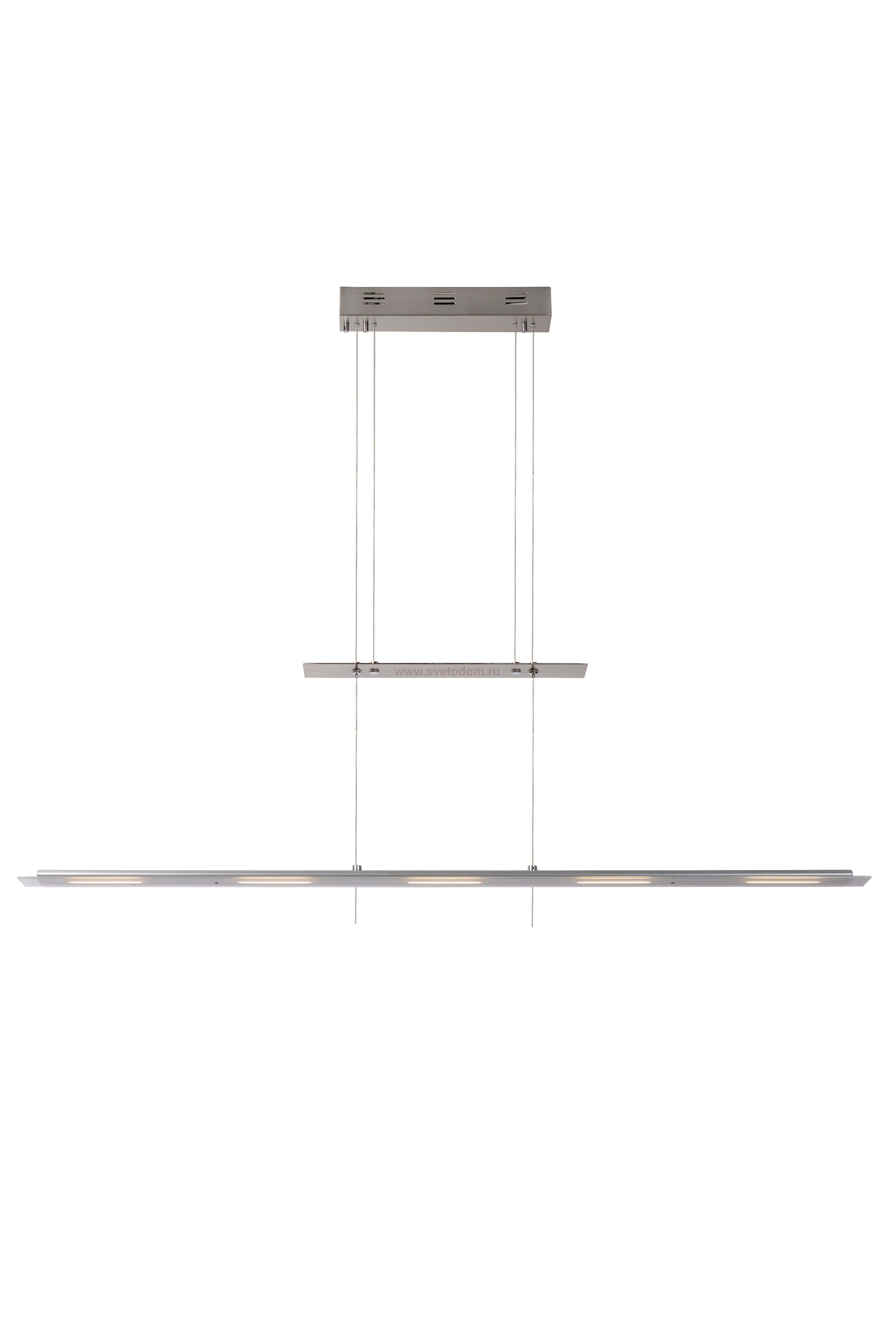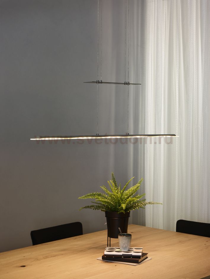 Nova brings renewal. This pendant light uses a unique system with which the entire armature is simple to set in height. The minimum height is 100 centimetres, and the maximum height, 140 centimetres. The surface, with five integrated LED lights, is 115 centimetres long in total. You determine the brightness after connecting a dimmer. Nova fits very beautifully in a modern interior, in the kitchen, living room or even a bedroom.