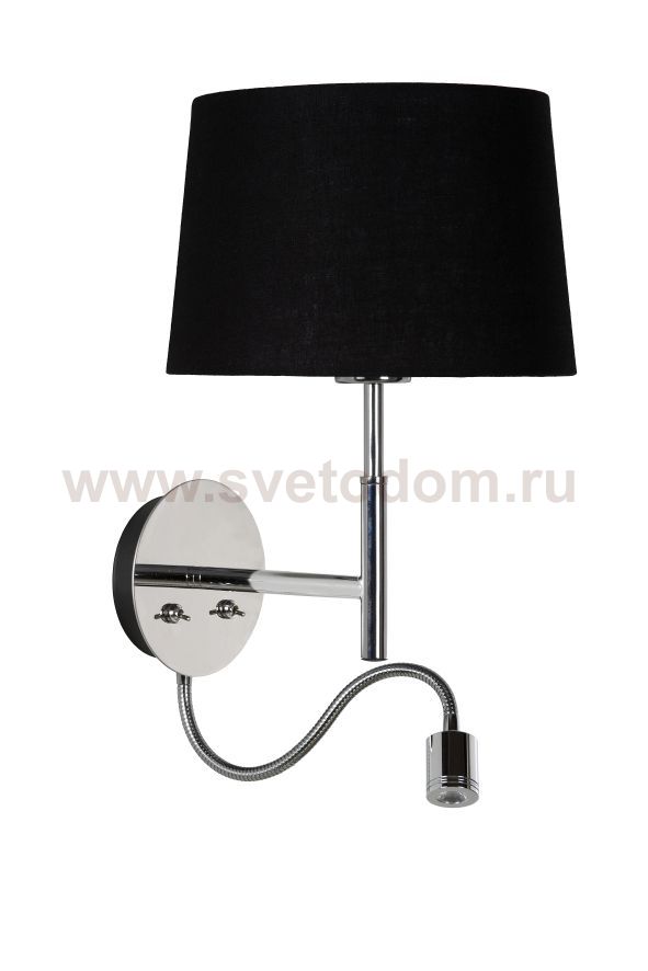 A lighting double-decker for your modern sitting room. This Saxen lighting element gives you focused lighting on two levels. A cotton lampshade holds pride of place at the top. Inside, you find an E27 fitting as passenger. Let your own (LED) get on board. At the bottom, a permanent LED light source of 3W does its utmost to illuminate your whole living room. You move the flexible metal lamp arm. You find two switches on the metal body. You decide which way to go.