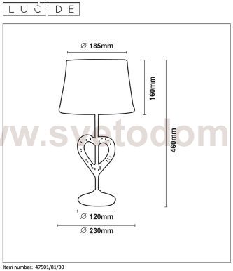 Shirly is a romantic table lamp. The striking heart on the fine pedestal instantly sets the ta in combination with the classic lamp shade. The table lamp looks great on your dresser or as a mood setter in your bedroom. At a height of 46 centimetres, it puts any room cosily in the spotlight with its attractive looks. Shirly is a unique model. Its finesse and loving appearance are not limited to Valentine's.