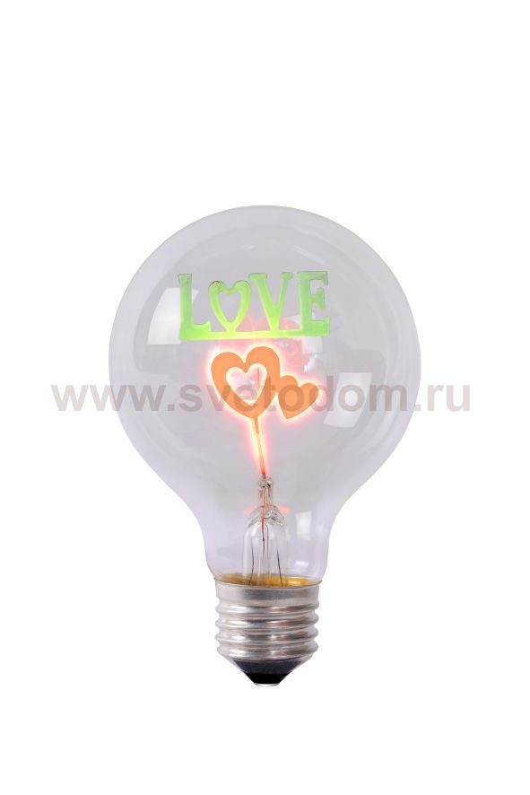 Love is in the air. Or in this case: love is in the LED bulb. This playful bulb shows what is possible with LED lighting. Love in combination with two beautiful hearts light up when you flip the switch. This bulb is made to fit in a classic E27 fitting. Consumption is never a game breaker anyway. This LED bulb consumes just 3 watts.