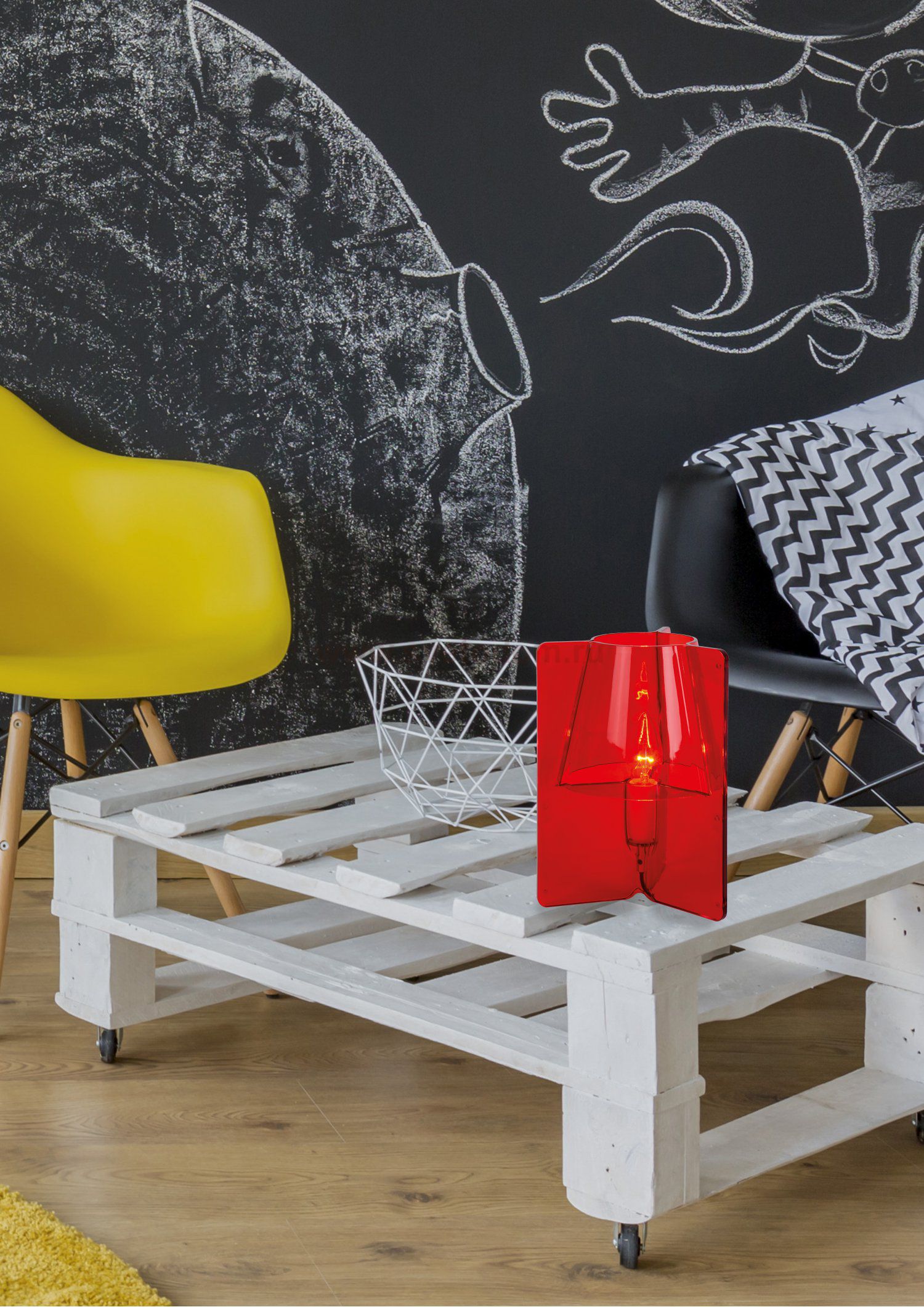Pleasantly disturbed and especially very spicy. The unique shapes of table lamp Tripli spoils the eyes. The pleasant light that Tripli distributes pampers the atmosphere. This table lamp in red plastic is halfway between a futuristic rocket and a classic table lamp with light shade. The design is a guaranteed eye-catcher in modern and colourful interiors. The unique shapes give any decor a unique twist. It is certainly quirky, but with a height of 25 centimetres, any table is a good place.