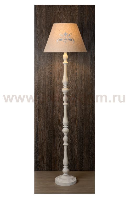 Robin is an elegant standing lamp in a taupe colour. The base is made of wood and radiates finesse. The fine finish of the wood and the recurring motif create a rustic appearance. Ideal in an interior in cottage style. The lamp shade is finished in fine linen and has a diameter at the bottom of 40 centimetres. A beautiful design makes this floor lamp with a height of 150 centimetres complete.