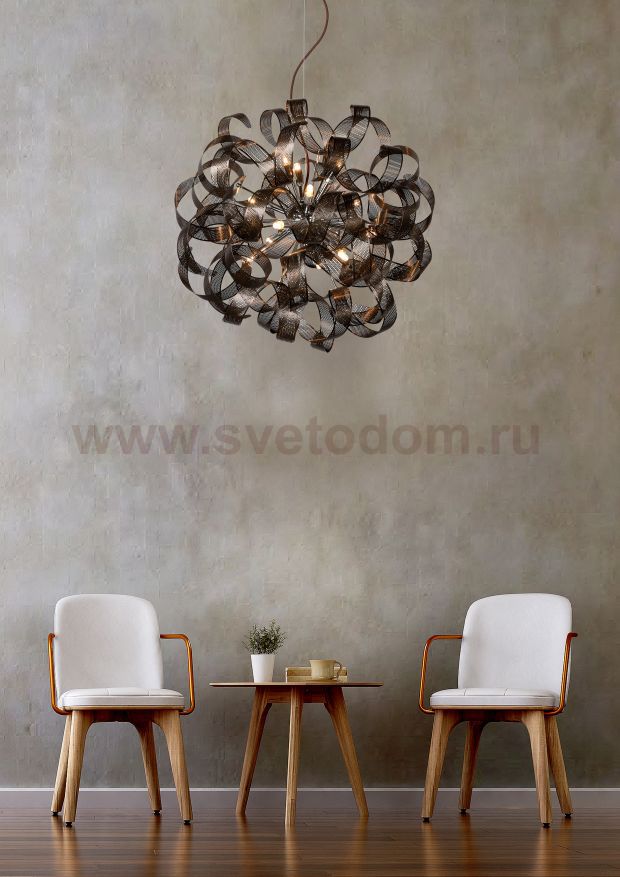 An eyecatcher. You cannot call this Atoma hanging lamp anything but that. Artistic, refined and especially impressive. A hanging lamp that lifts your interior to a higher level with a yank: yes, Atoma knows its business. This version has a diameter of 60 centimetres, but the series is available in different sizes. There is always a version that lends itself perfectly to your interior. Between the metal curls there are 12 light points, each with a G9 fitting. The result is like a bright star. Unless you add an external dimmer, of course, since that is possible as well. Atoma steals the show with pleasure, in your living room, family room, dining room, bedroom or entry.