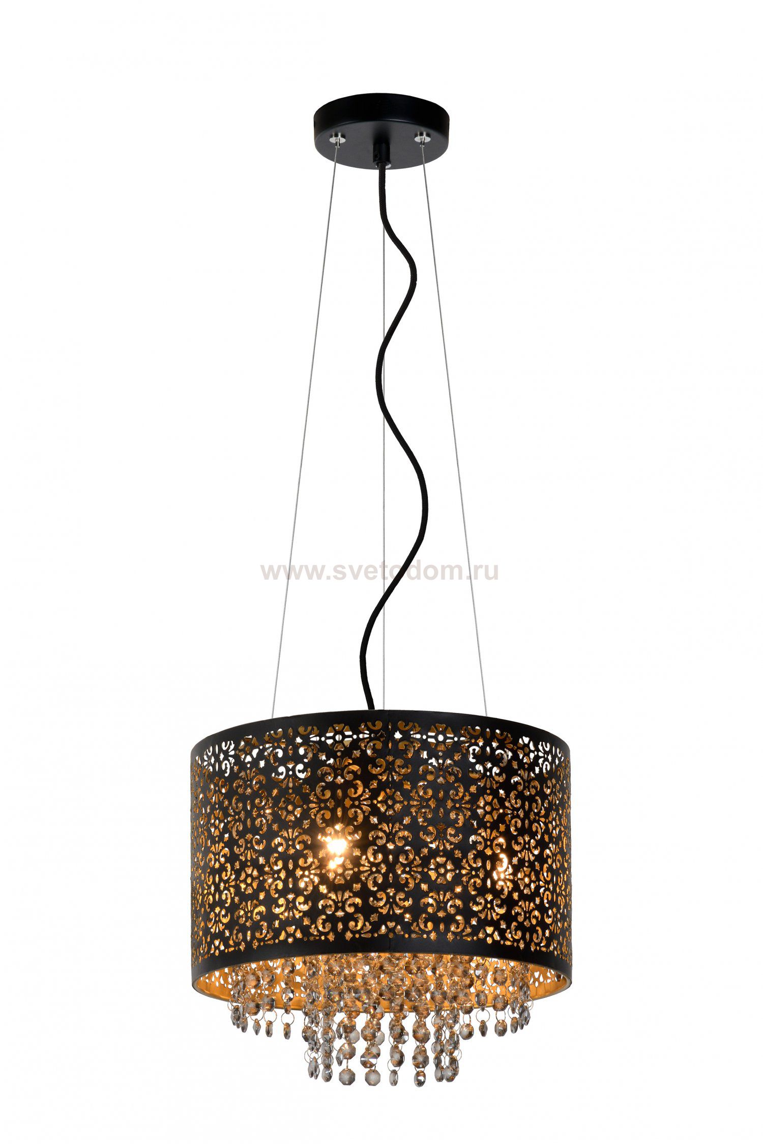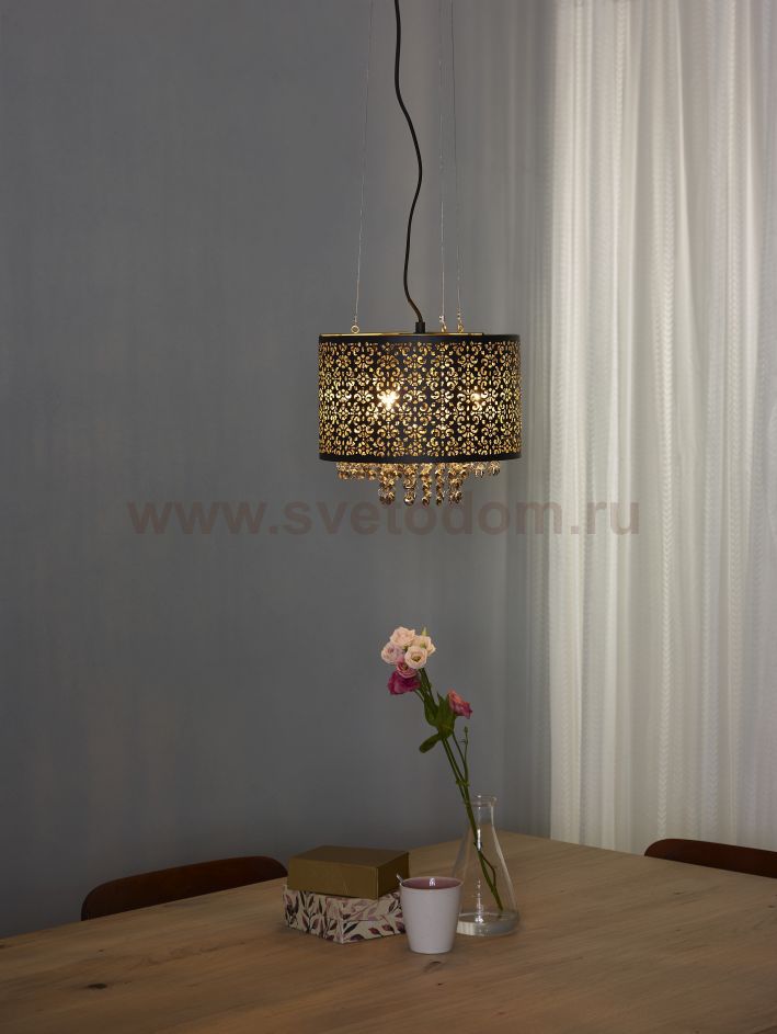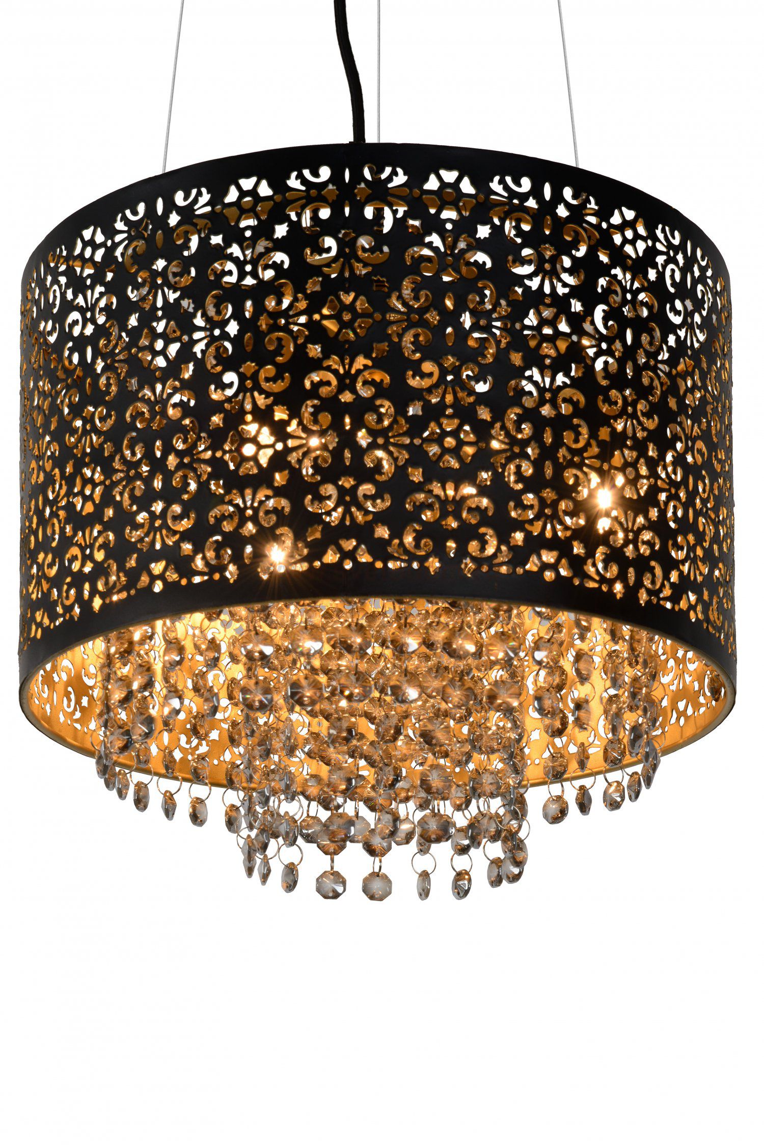 Raka ensures a great spectacle on your ceiling. The beads give the lamp an elegant feature. With its beautiful colours and stylish finishing, Raka is the showpiece of your classic living room. The black edge fits well with the ornaments on the cover. Raka ensures an exceptional light spectacle and is the favourite successor of the traditional luster. Also adjustable in height and dimmable.