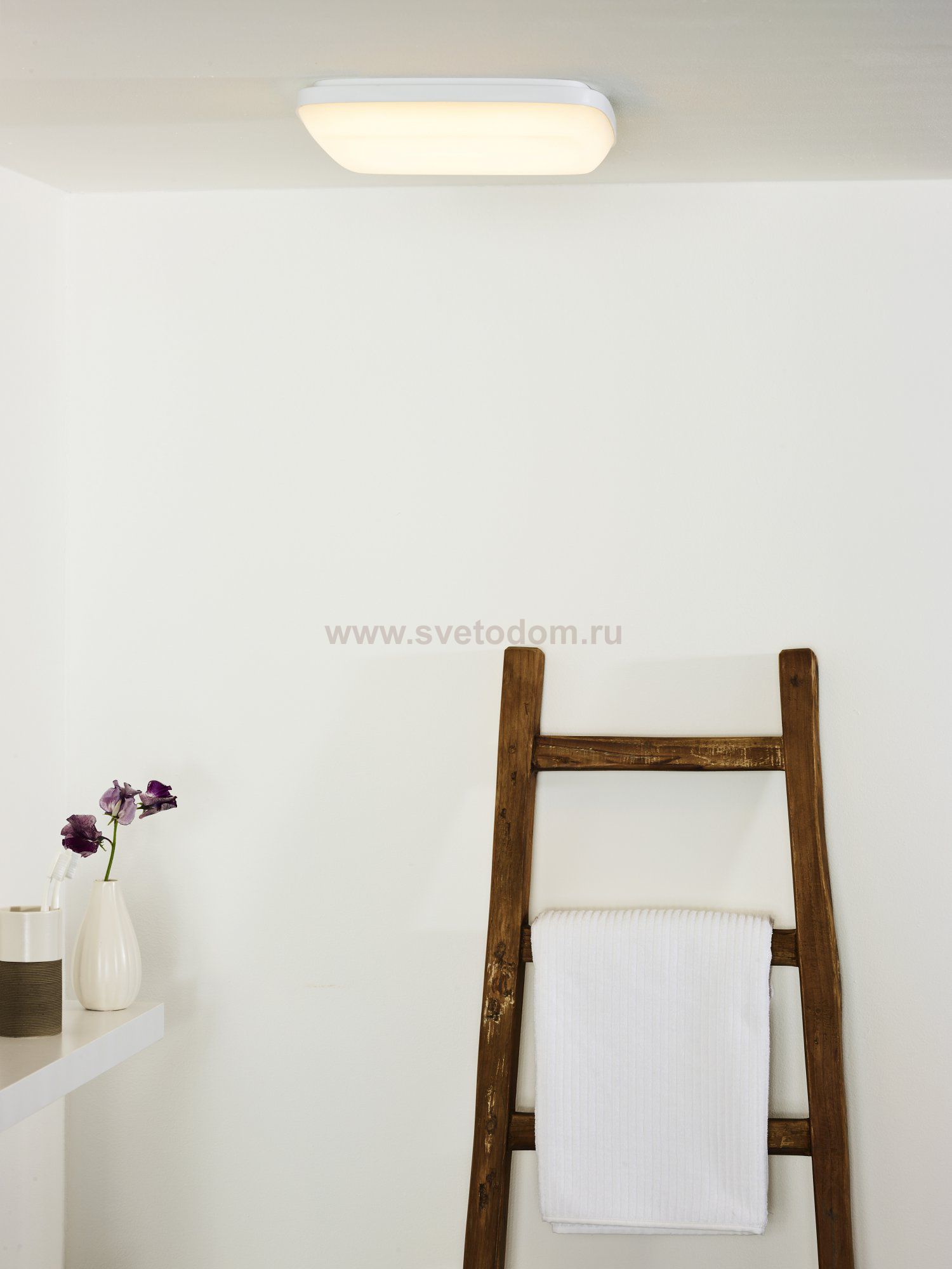 Tisis LED is a beautiful ceiling lamp for the bathroom. Not only because of its striking design in a square, but also because of its good performance. The ceiling lamp is fitted with an integrated LED bulb. The high-quality LED light source provides a warm, white light and consumes just 24 watts. The housing in high-quality PVC is exactly 28 by 28 centimetres. The high IP value makes this ceiling light an ideal choice for the bathroom or other damp rooms.