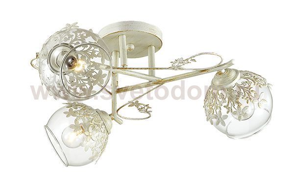 Люстра потолочная 3041/3C серии Florana оформлена в классическом стиле. Люстра состоит из стеклянных плафонов с ажурным металлическим декором и легкой арматуры белого с золотой патиной цвета. Данная модель подарит ощущение воздушной романтики и нежности. Цоколь E14. Мощность 3x40W. Нет ламп в комплекте.