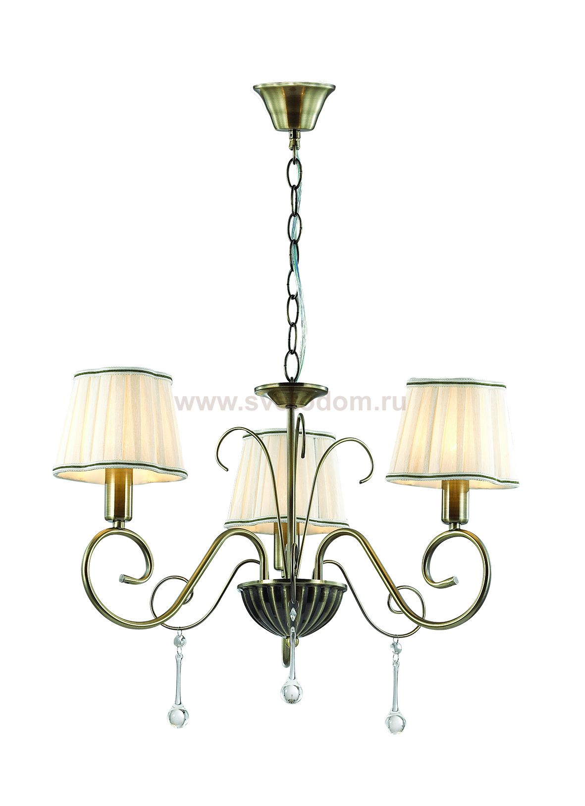 Арматура, декор: металлическая арматура украшена подвесками из стекла формой "капля"; плафон: тканевый абажур Материал плафона