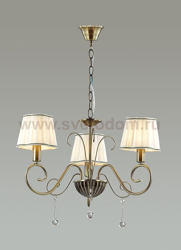 Люстра 3055/3 серии Emilia оформлена в классическом стиле. Люстра состоит из тканевых абажуров пастельных тонов и арматуры цвета состаренной бронзы, украшенной подвесками из стекла формы "капля". Изящность формы и классика цвета не оставят равнодушным ни одного гостя в вашем доме. Цоколь E14. Мощность 3x40W. Нет ламп в комплекте.