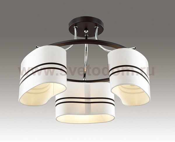 Люстра потолочная 3056/3C линии Ivara оформлена в современном стиле. Люстра состоит из объемных белых тканевых абажуров, декорированных чёрной полоской и арматуры цветов венге и хром. Стильное сочетание цветов данной модели еще раз доказывает, что элегантность в простоте. Цоколь Е27. Мощность 3x40W. Нет ламп в комплекте.