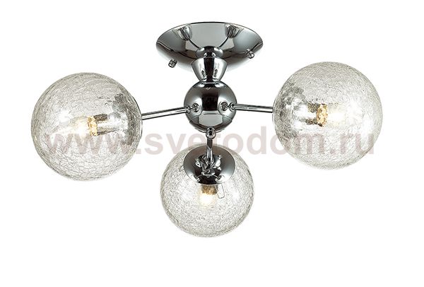 Люстра потолочная 3060/3C линии Palla оформлена в современном стиле. Люстра состоит из прозрачных плафонов с эффектом потрескавшегося стекла в форме шара и хромовой арматуры. Данная модель за счет формы плафонов визуально увеличит объем Вашей комнаты. Цоколь E14. Мощность 3x40W. Нет ламп в комплекте.