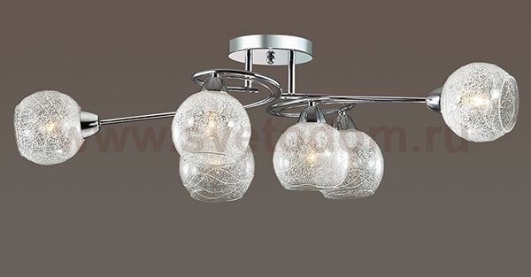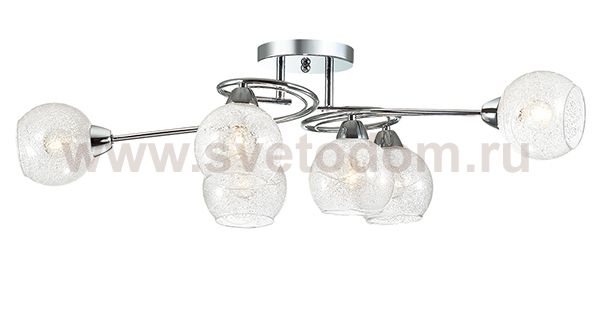 Люстра потолочная 3063/6C линии Ninette оформлена в современном стиле. Люстра состоит из стеклянных прозрачных плафонов с легким рисунком, украшенных стеклянной крошкой, и необычной арматуры хромового цвета. Стильная, оригинальная, современная - вот главные качества данной модели. Цоколь E14. Мощность 6x60W. Нет ламп в комплекте.