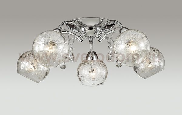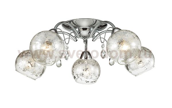 Люстра потолочная 3064/5C серии Siverina оформлена в современном стиле. Люстра состоит из стеклянных прозрачных плафонов, украшенных по внутренней части покрытием металлик, и арматуры хромового цвета с хрустальными подвесками. Данная модель привнесет в ваш дом немного снежного настроения. Цоколь E14. Мощность 5x40W. Нет ламп в комплекте.