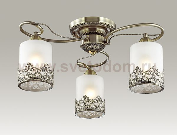 Арматура, декор: металл; плафон: матовое стекло с ажурной металлической окантовкой Материал плафона