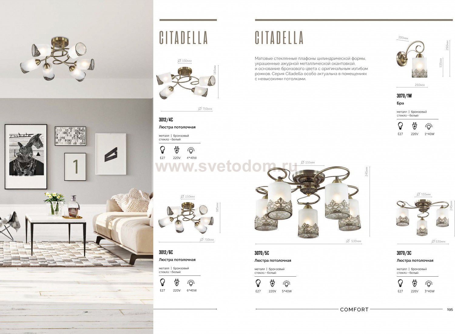 3070/3C COMFI LN16 067 бронзовый Люстра потолочная E27 3*40W 220V CITADELLA Штрих-код
